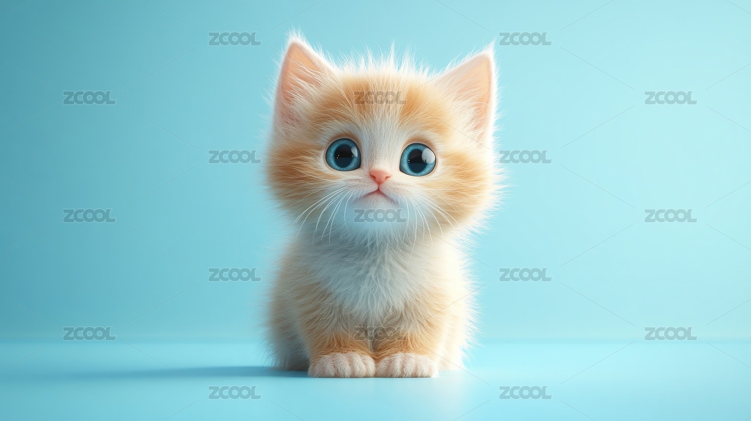 白色小猫坐于蓝色背景前