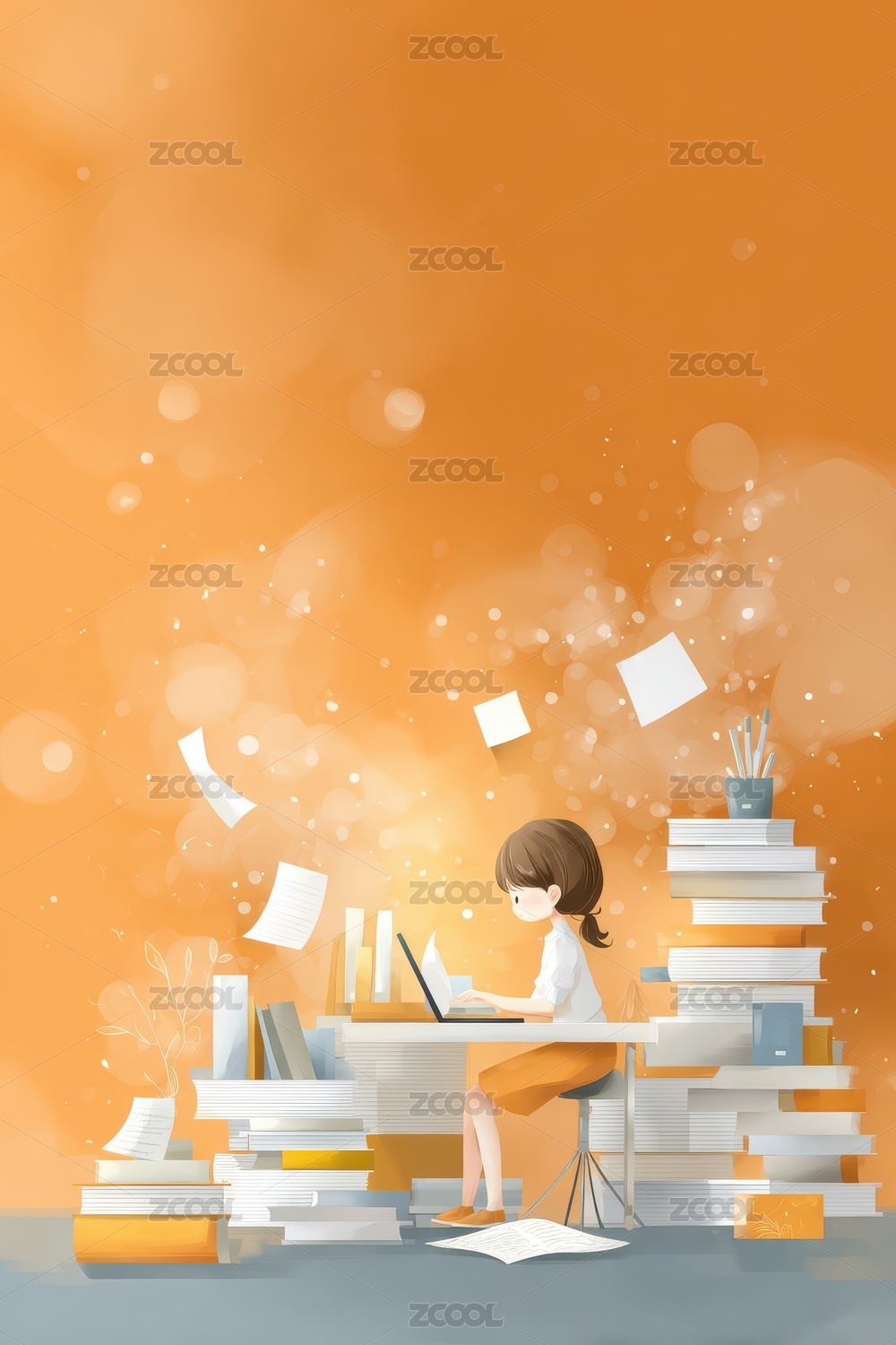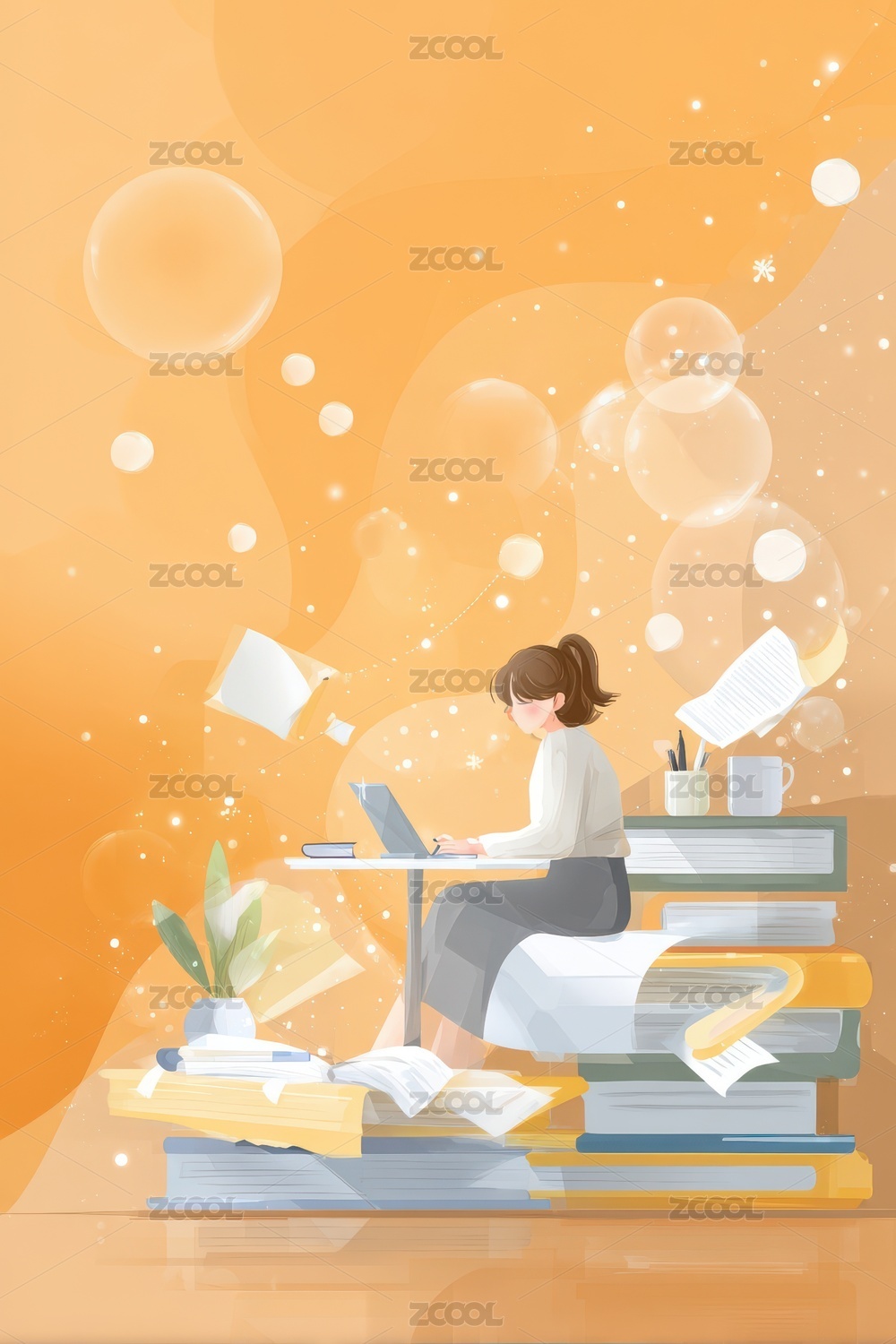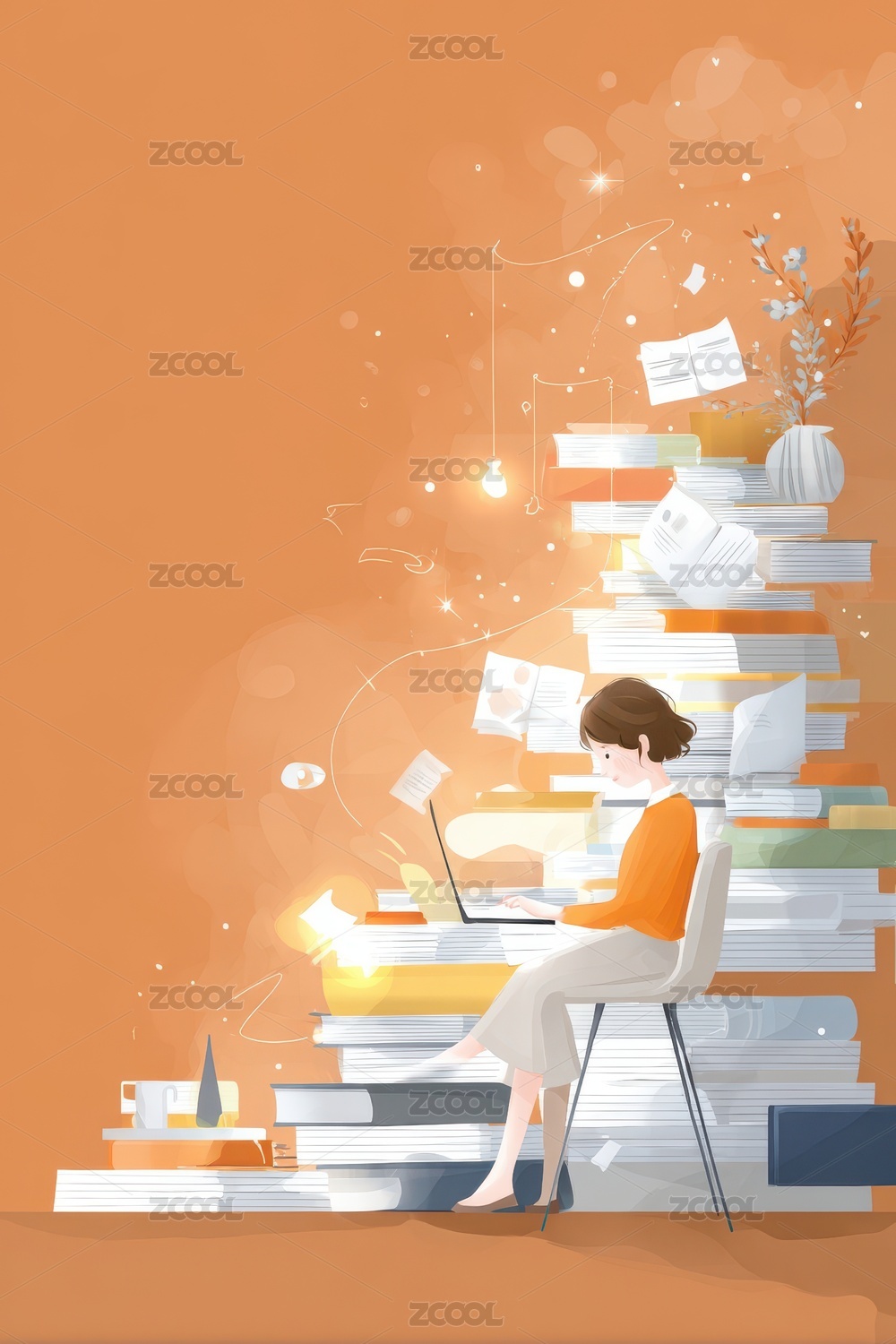 光影,梦幻,笔记本,杯子,书籍,少女,书堆,笔筒