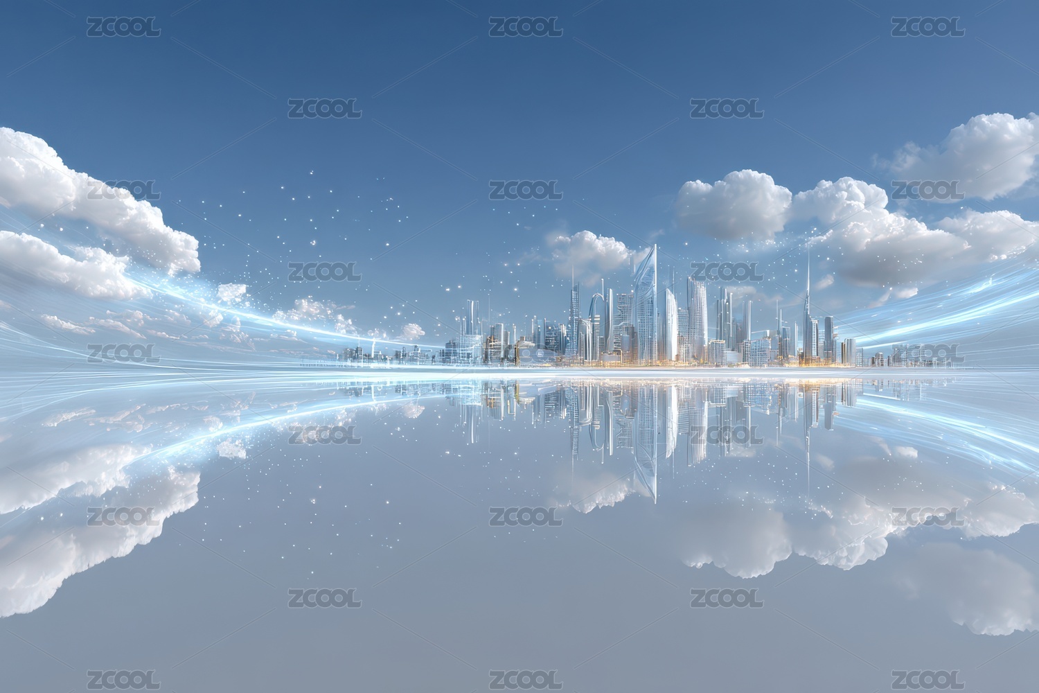 科技,未来,城市,建筑,水面,反射,曲线,光轨
