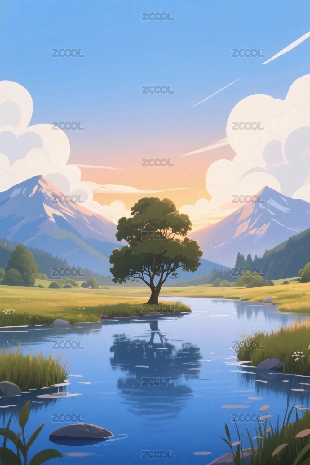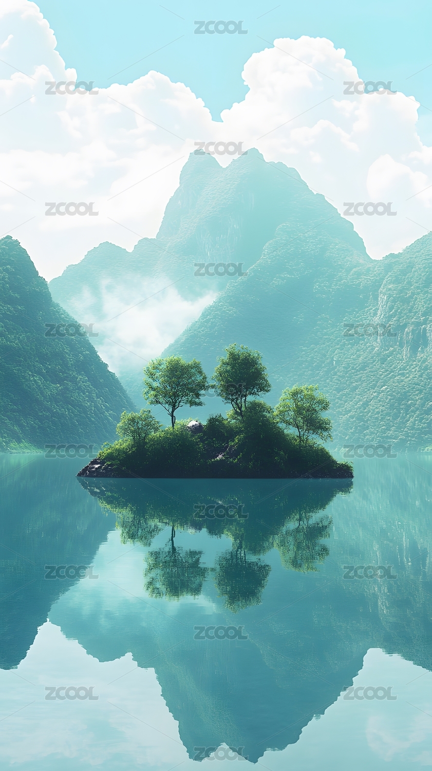 光影,绿树,倒影,晨曦,山水,莲花,日出,静修,禅意