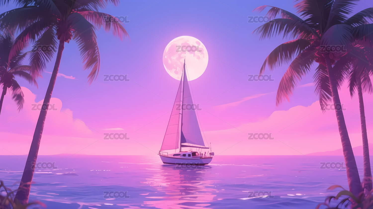 自然,温暖,帆船,夕阳,棕榈树,宁静,热带,岛屿,水面,天空