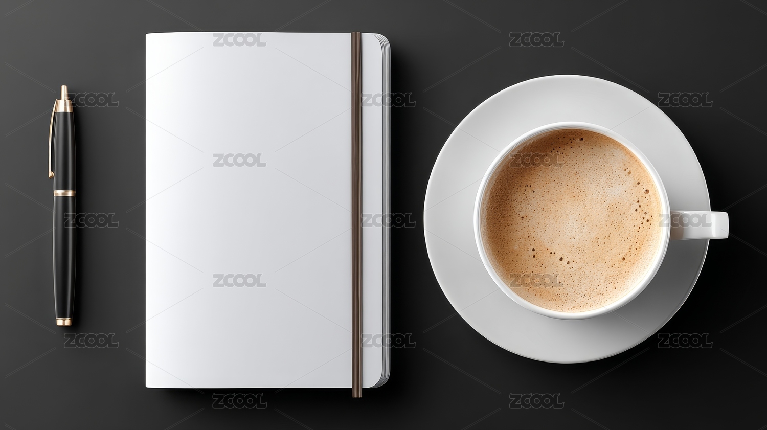 笔记本、钢笔与咖啡的静谧场景