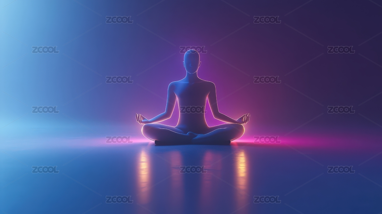 彩色光影中的瑜伽冥想者