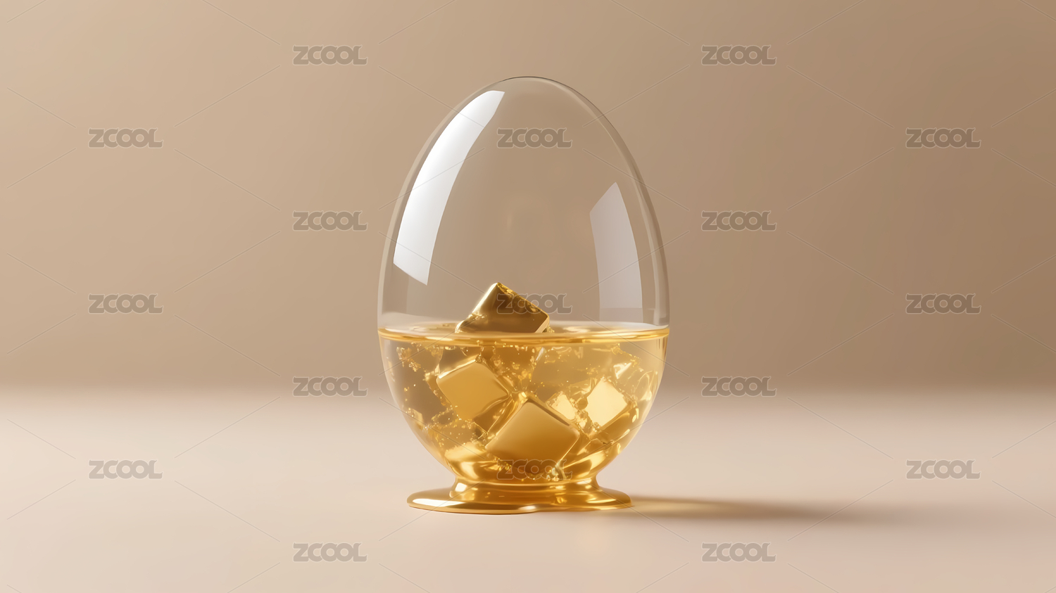 玻璃蛋形容器中的金色小物件