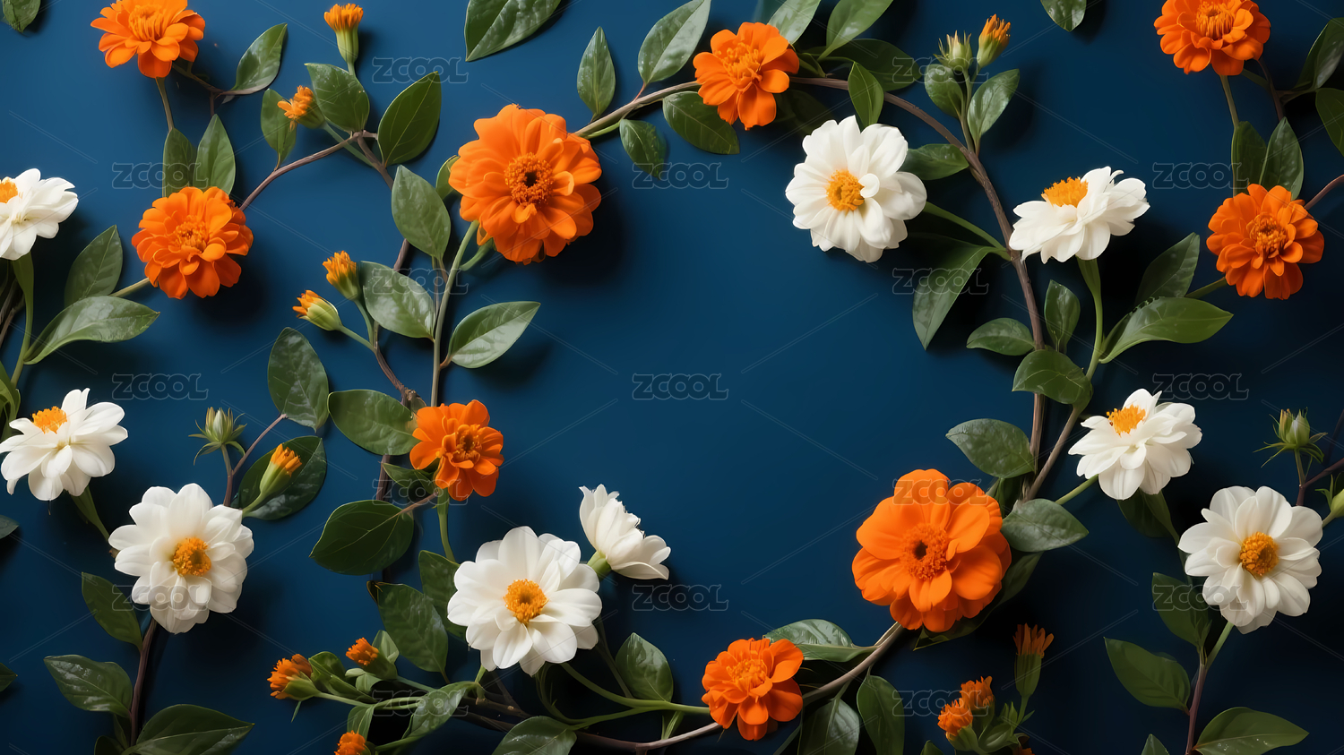 橙色和白色花卉浅色背景布置