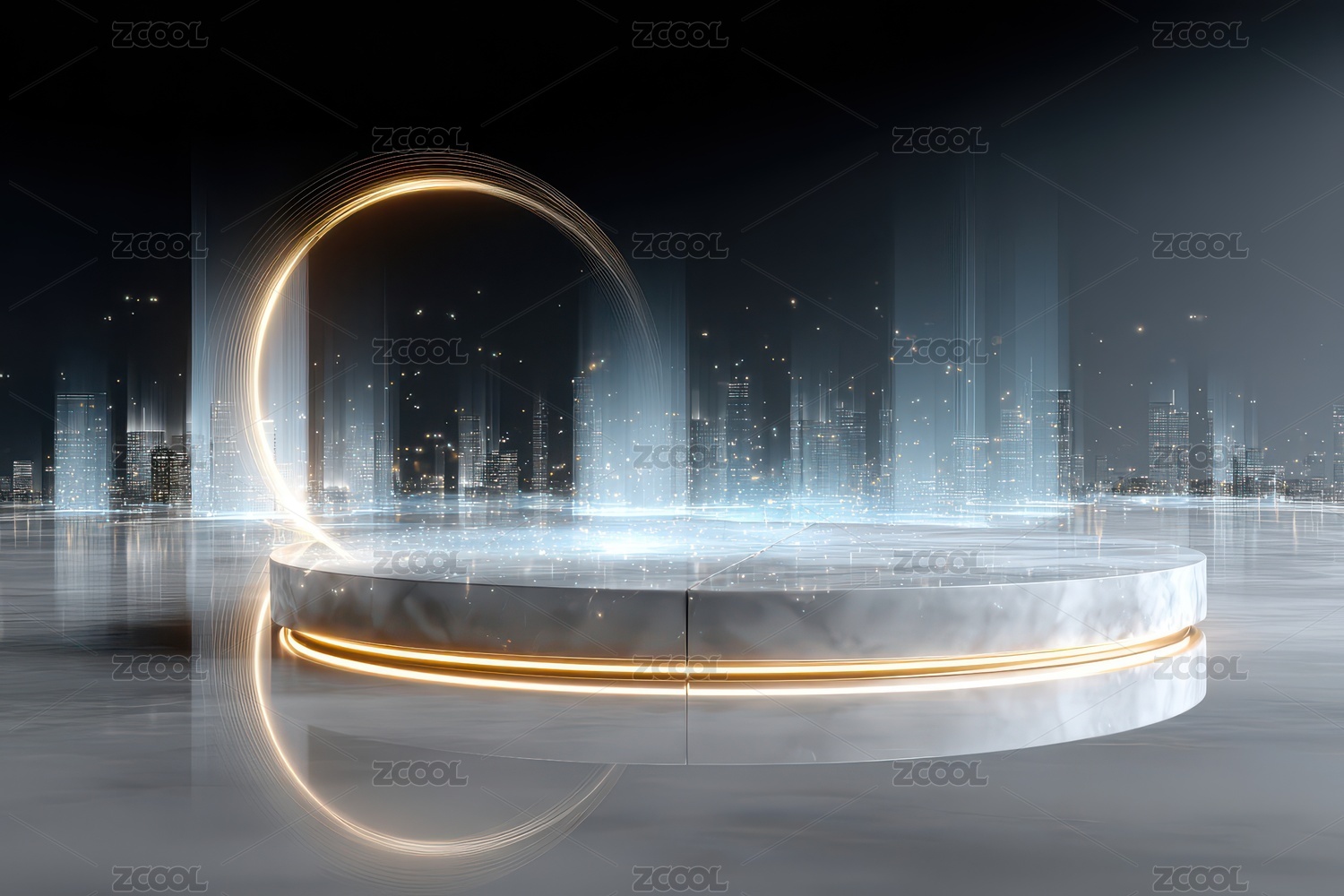 未来城市夜晚的科技舞台