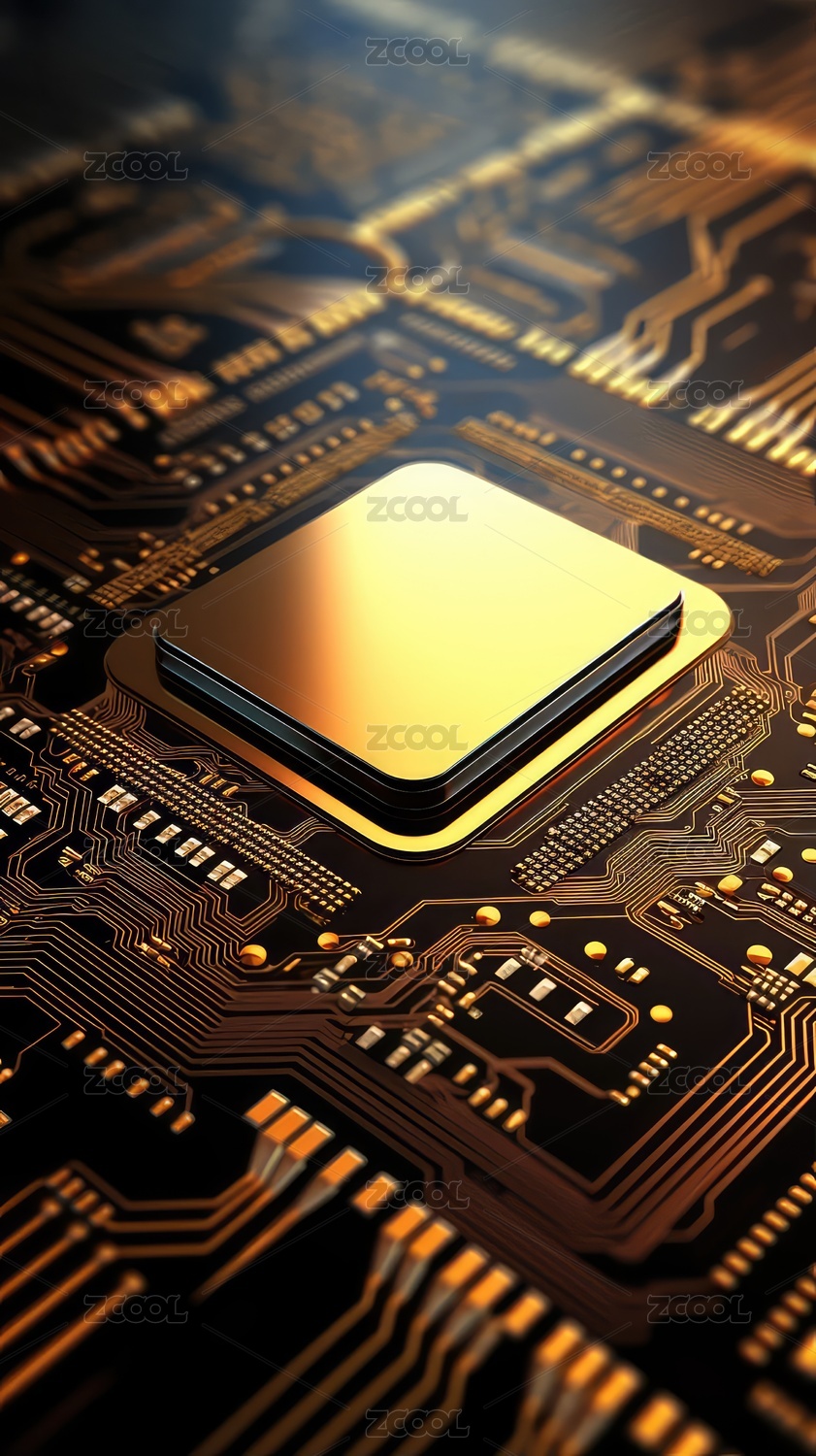 电路板特写金色芯片引人注目