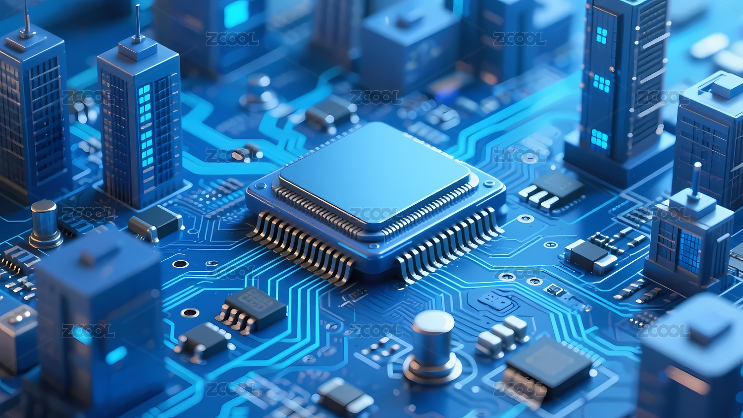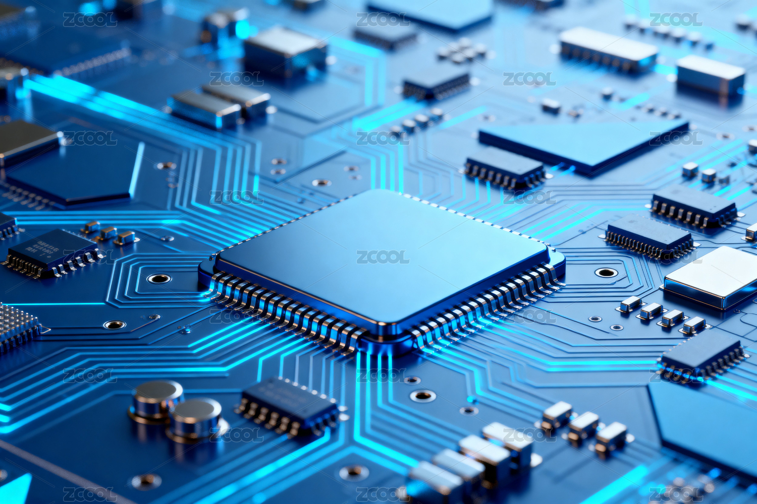 蓝色电路板芯片科技感