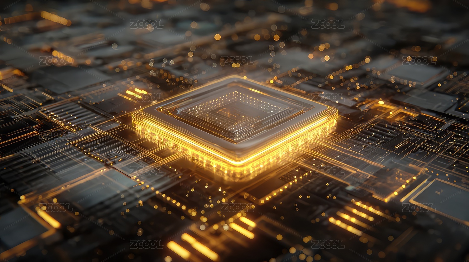 金色,芯片,电路板,科技,电子设备,细节,硬件,处理器,光芒,线路板