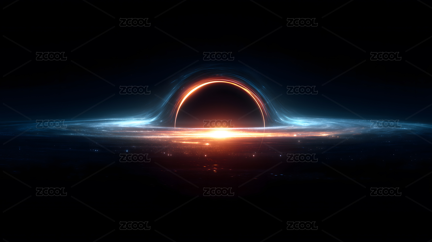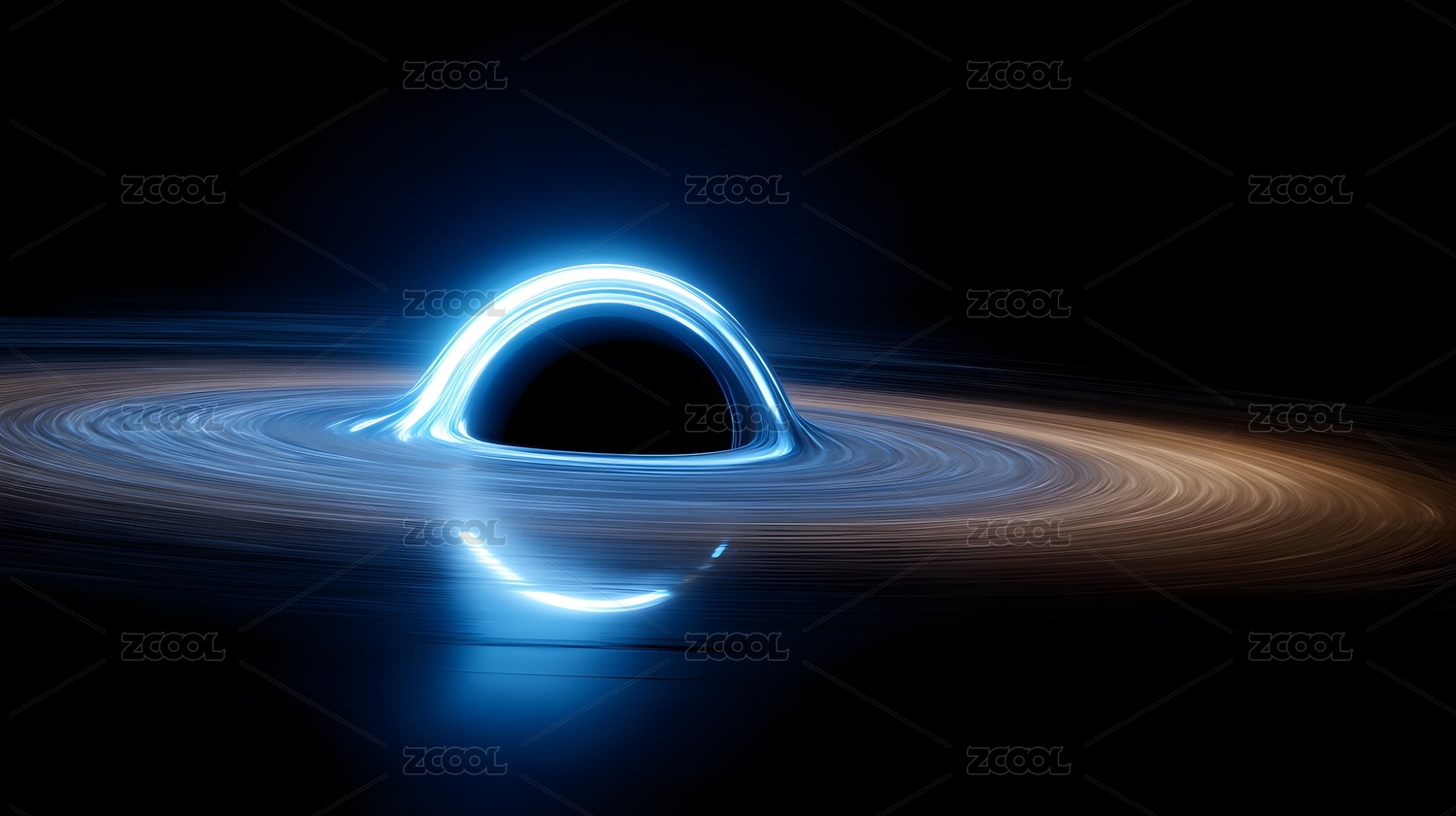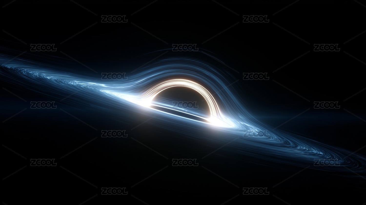 蓝色光环环绕的黑洞奇观