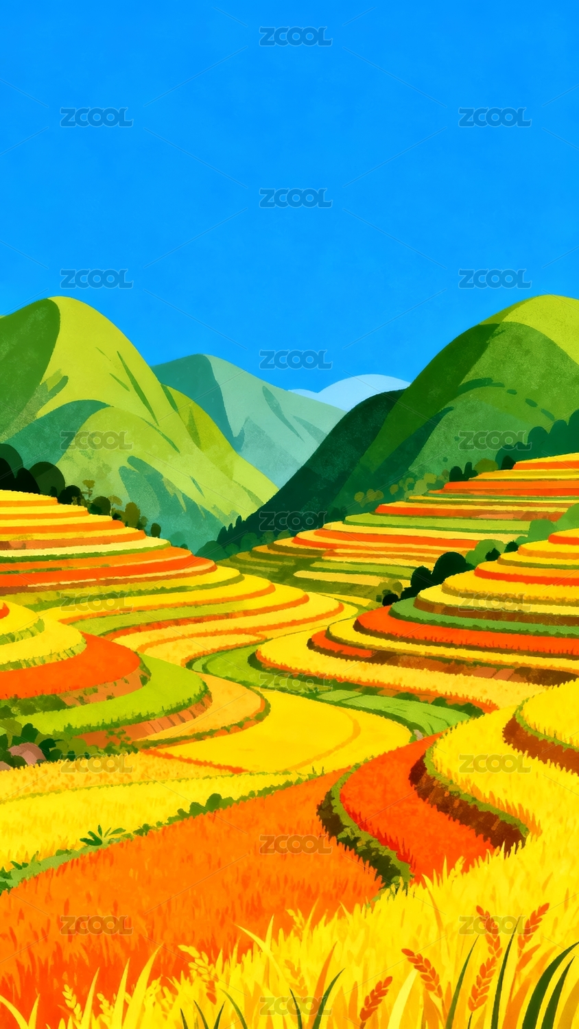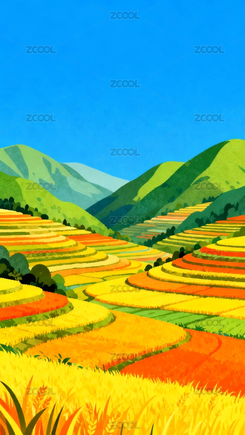 梯田多彩田园风光场景