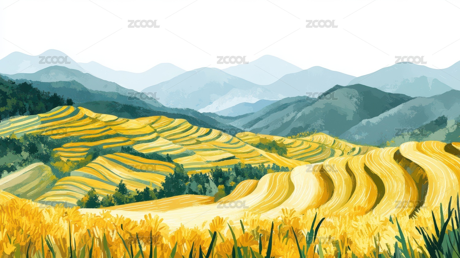 梯田村庄水彩风
