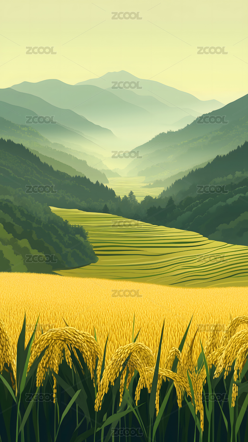 金色稻田与远山