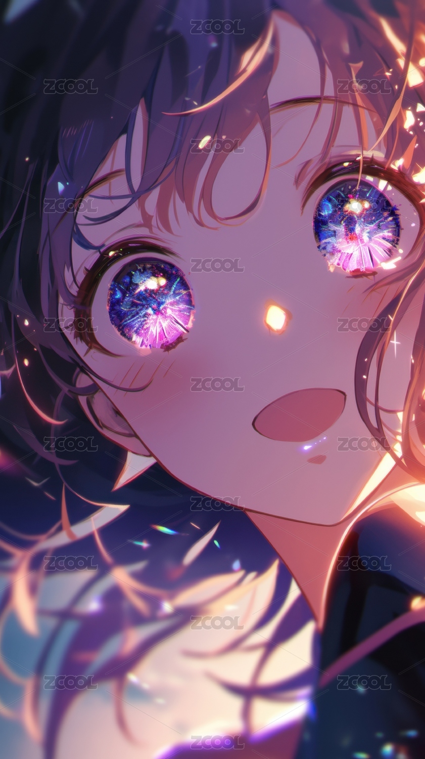 梦幻紫发少女星光点缀的眼眸
