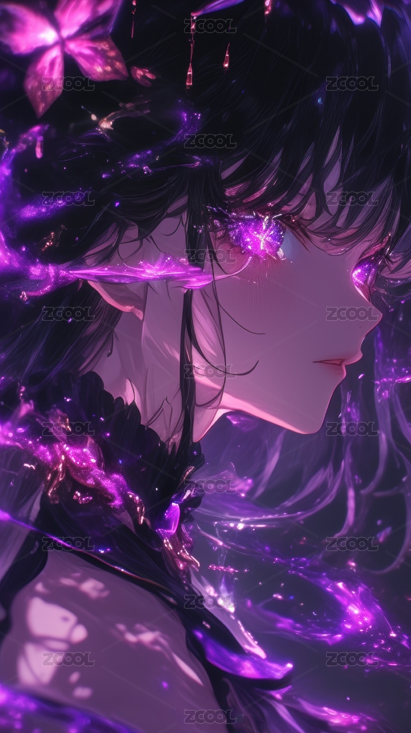 紫色光影中的神秘少女