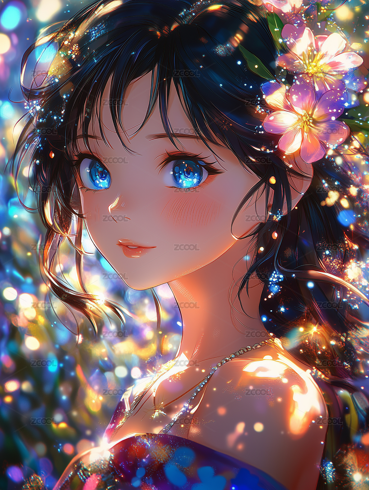 梦幻光影中的动漫少女