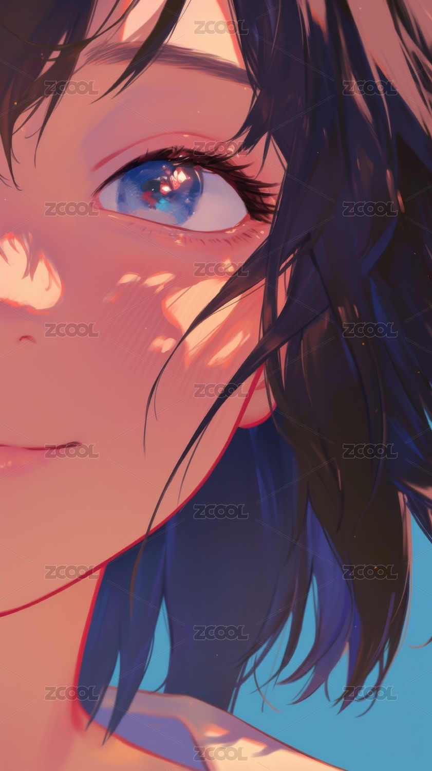 动漫少女侧脸特写