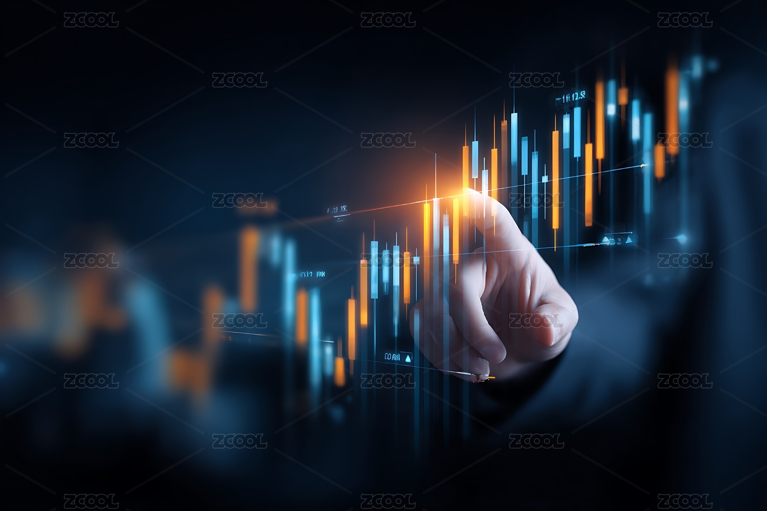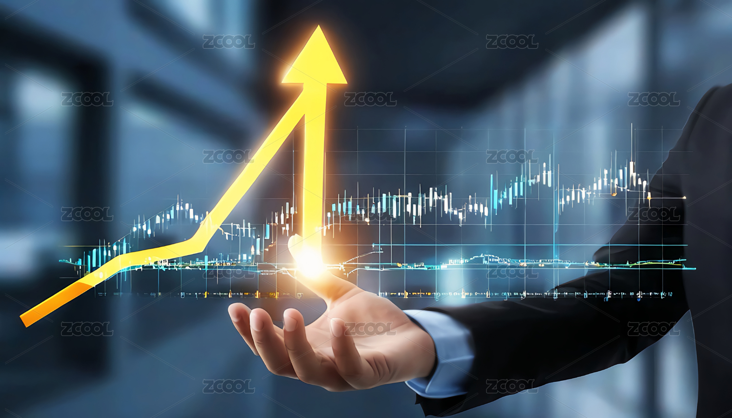 金色曲线上升趋势手指点亮