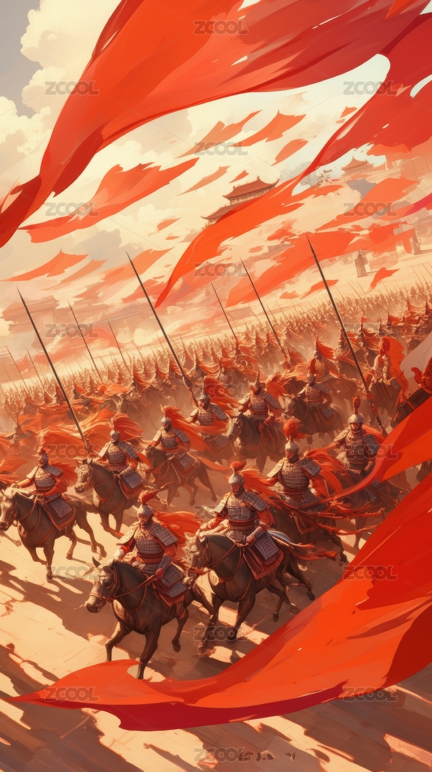 自然,风景,插画,卡通,漫画,盔甲,天空,云朵,古代,战场