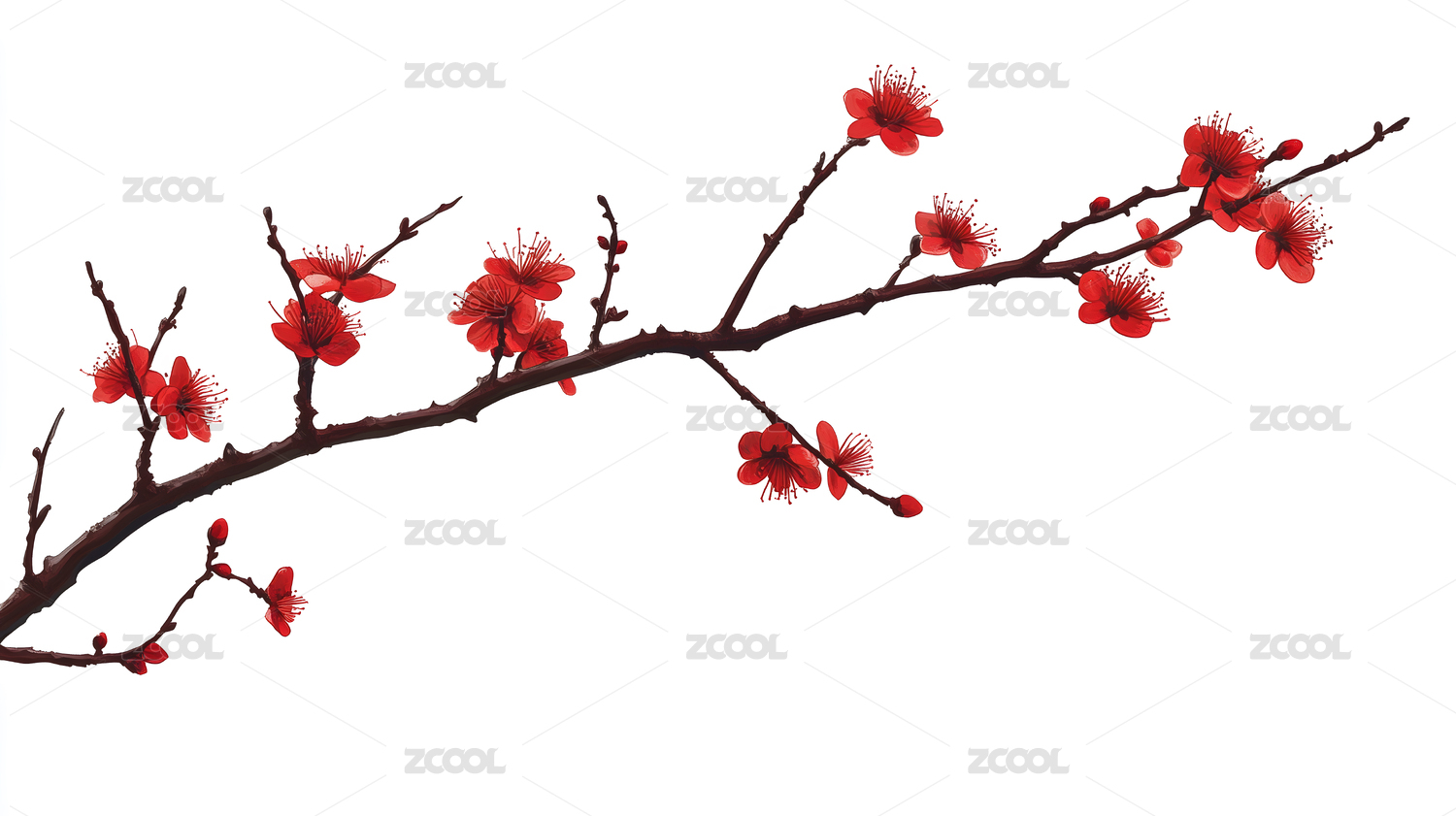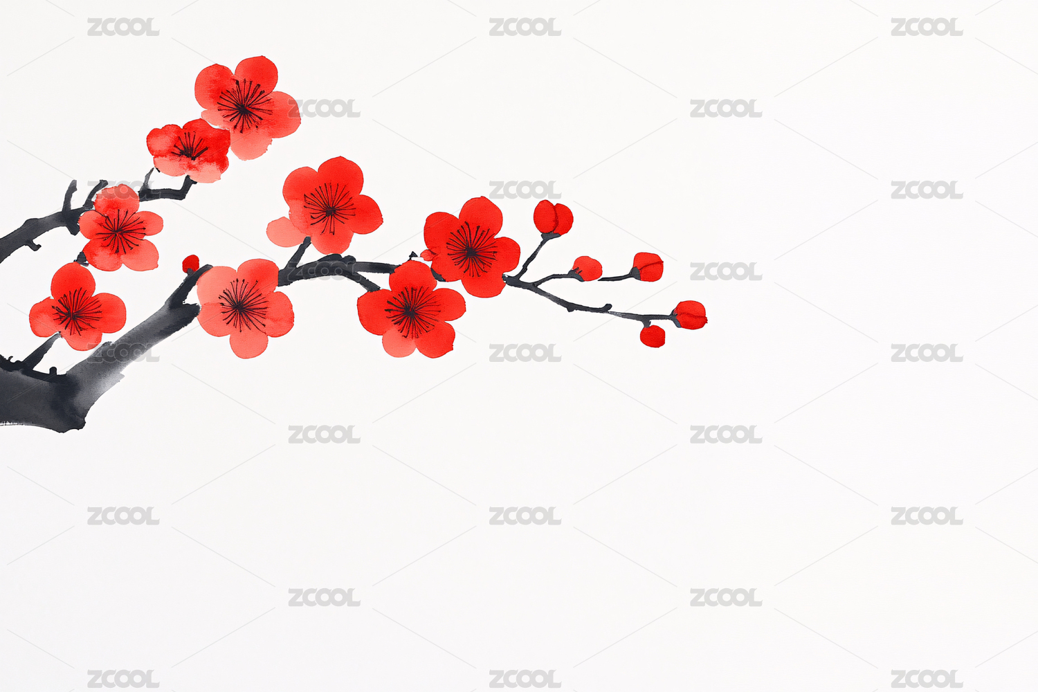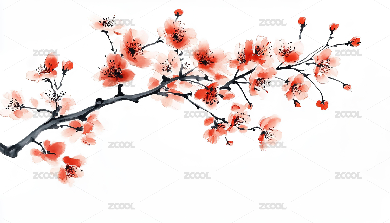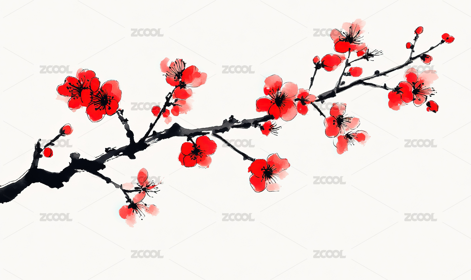 红梅枝条水墨画