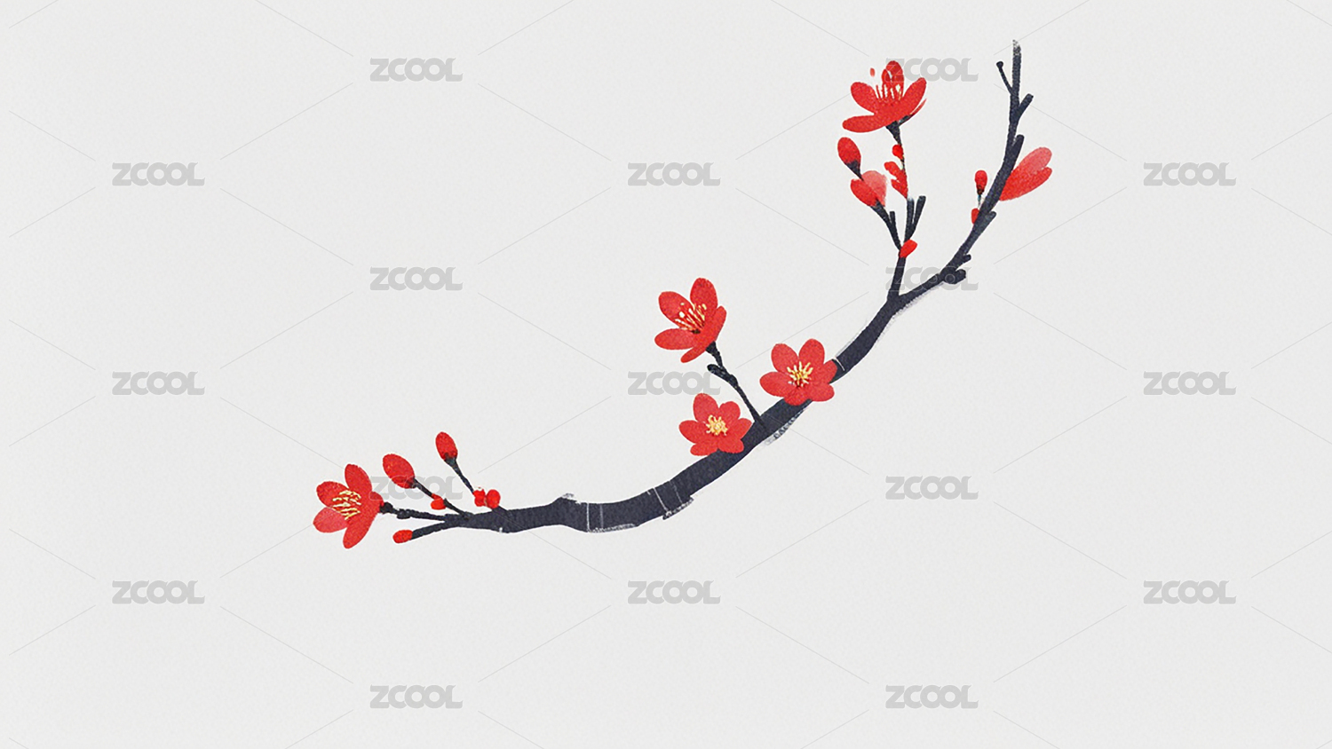 水墨红梅枝头盛开