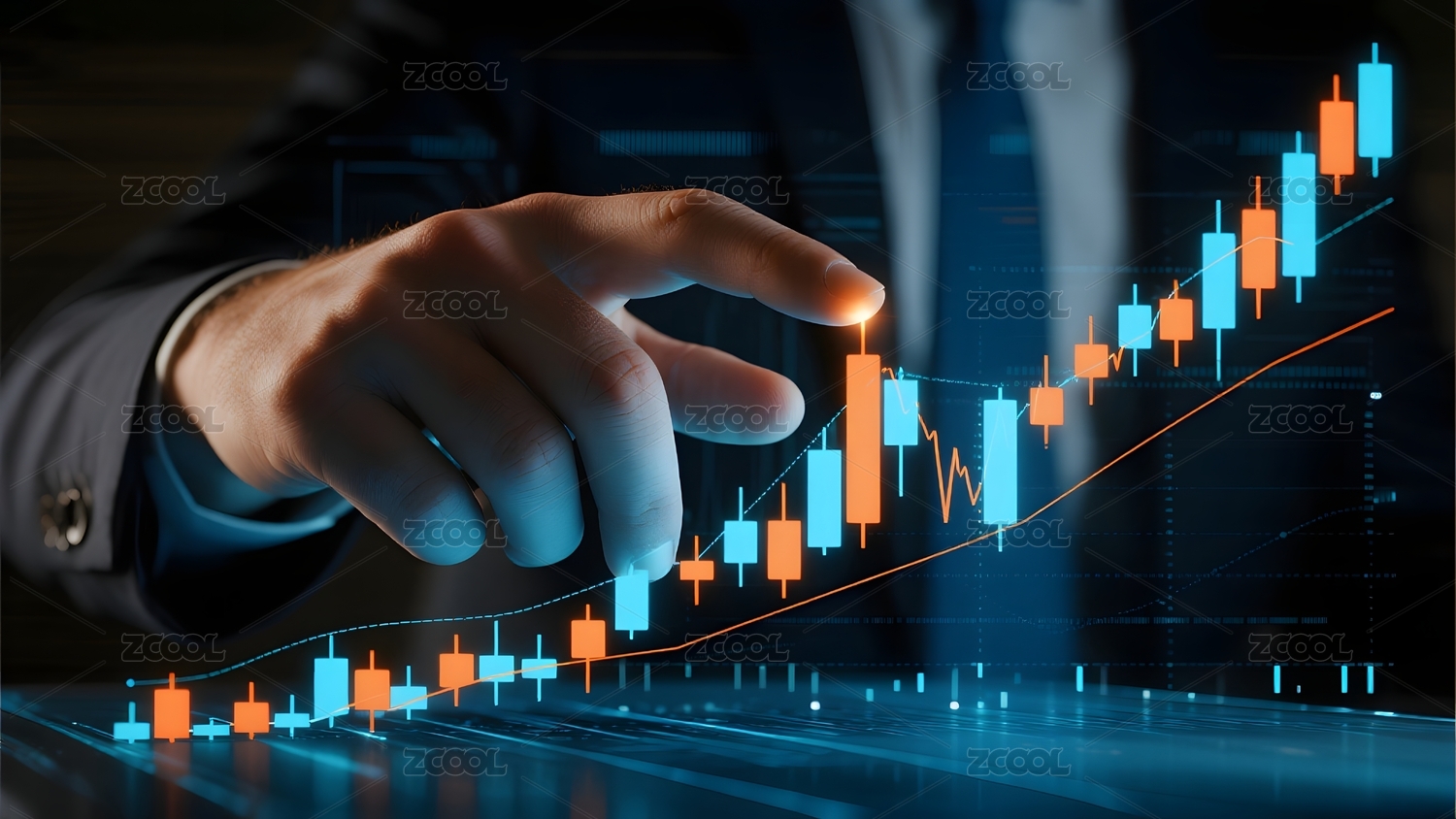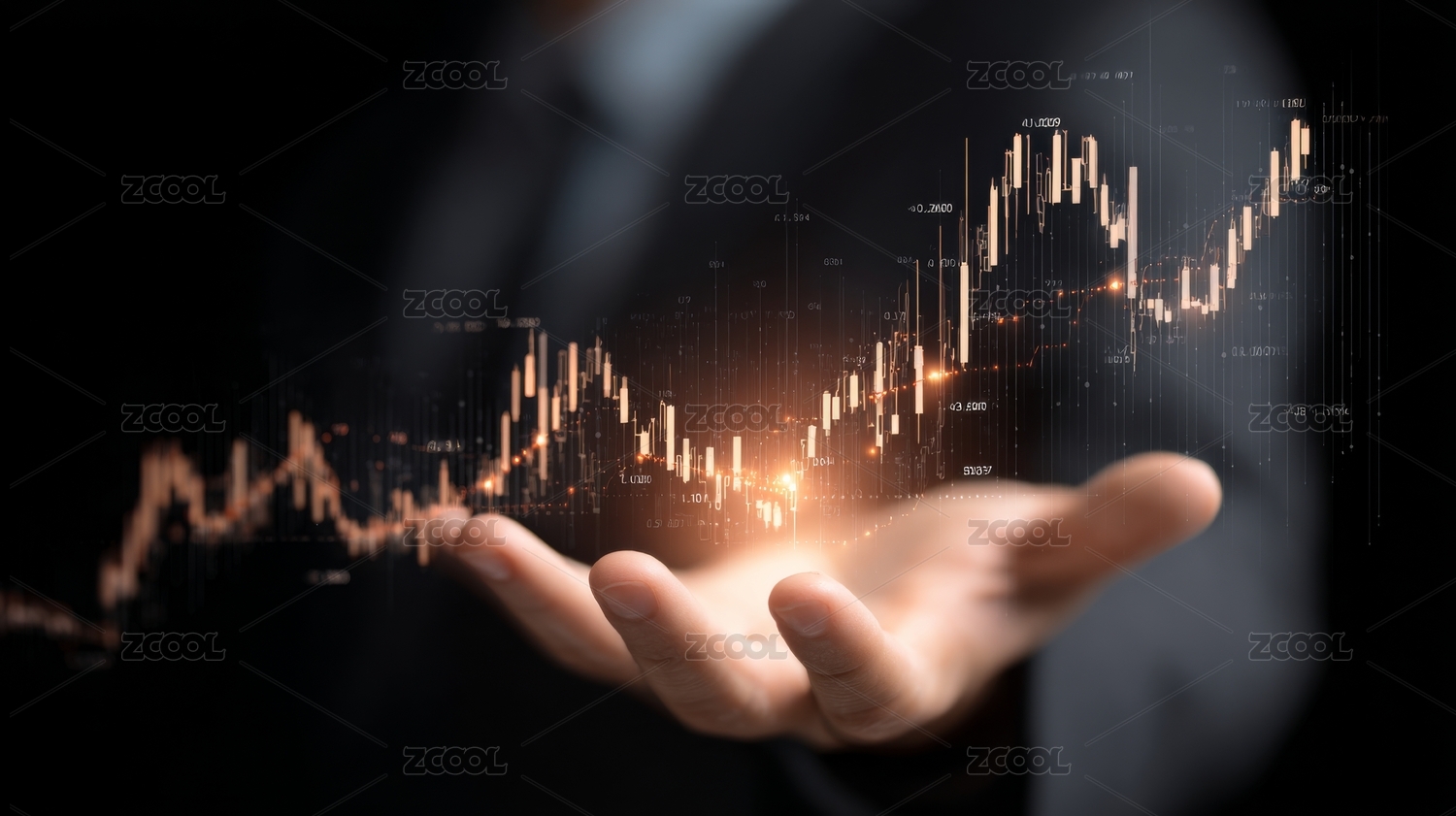 金色曲线上升趋势手指点亮