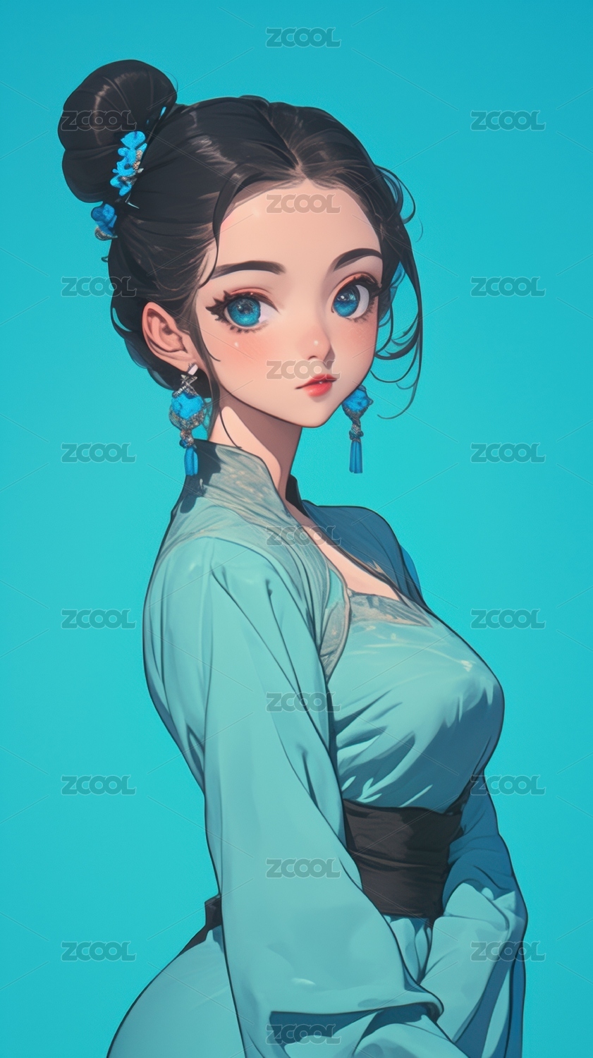 传统,插画,卡通,漫画,背景,长发,装饰,古典,耳环,服饰