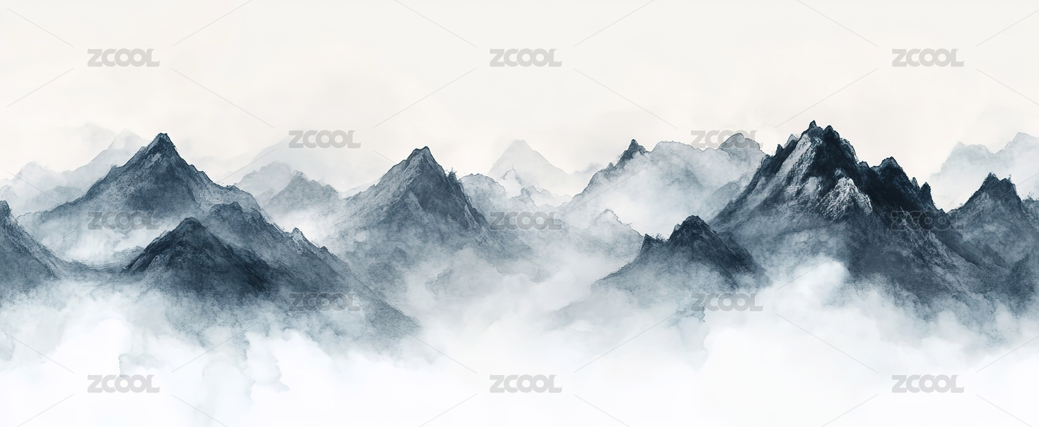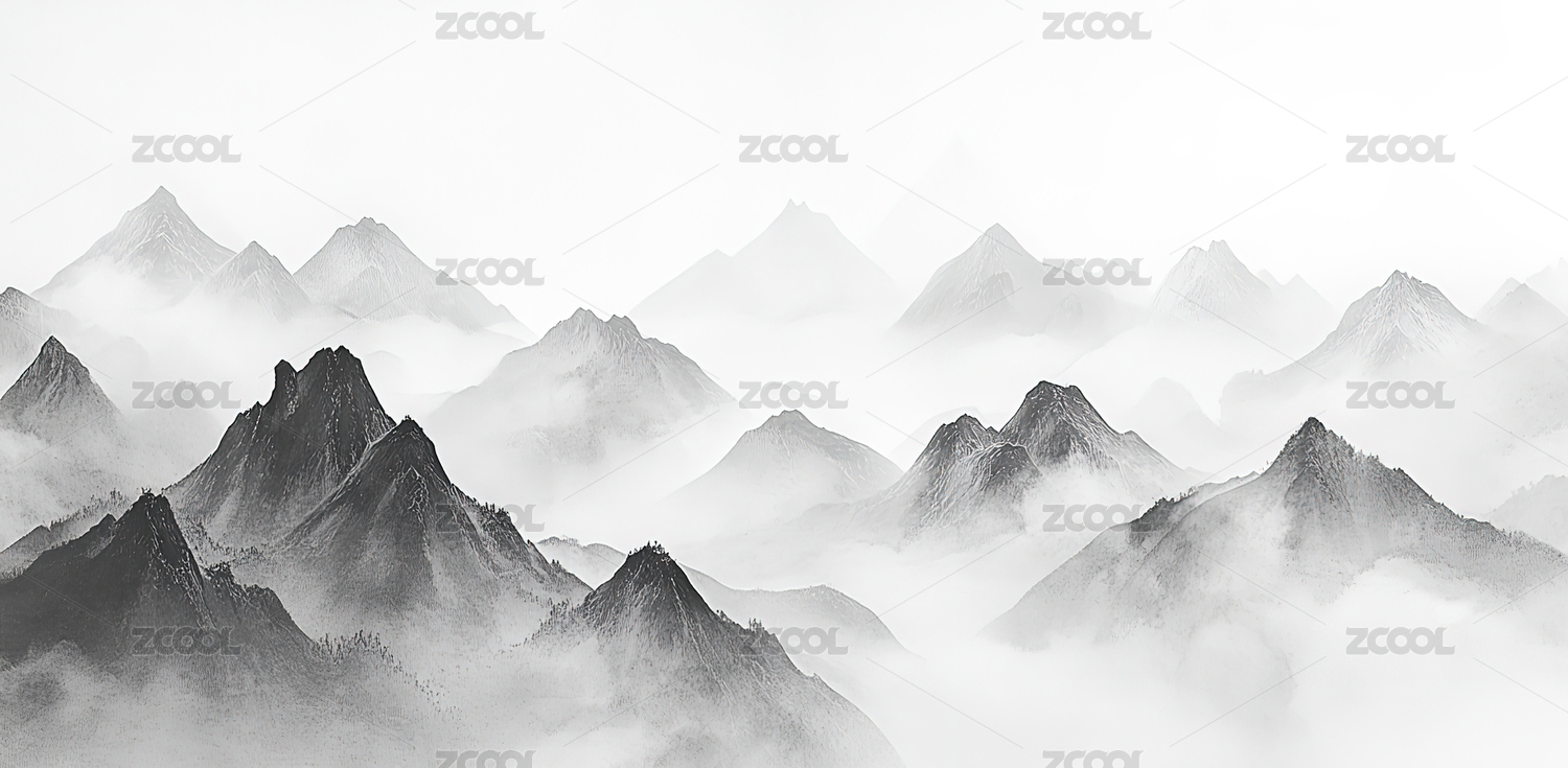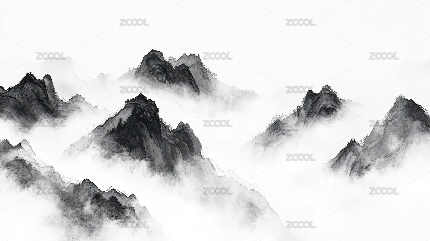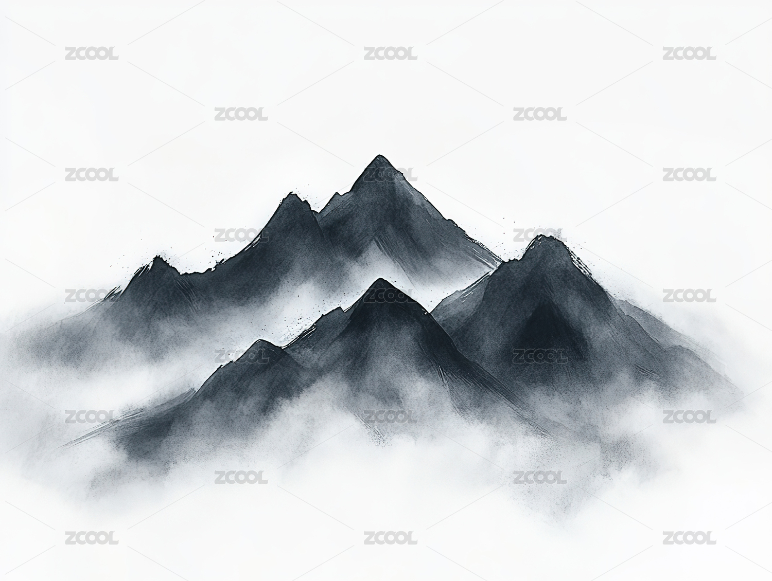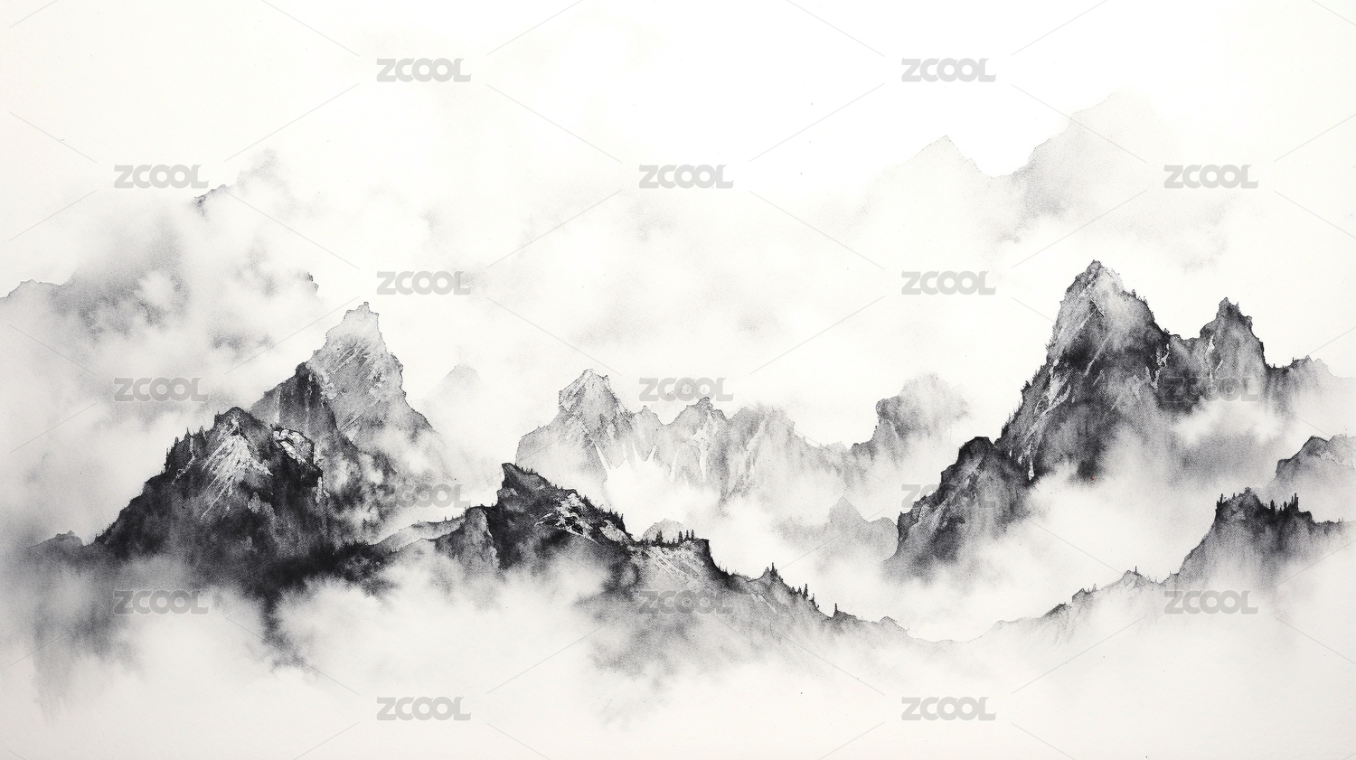 水墨,山水,画,云雾,远山,近山,艺术,传统,中国,风格