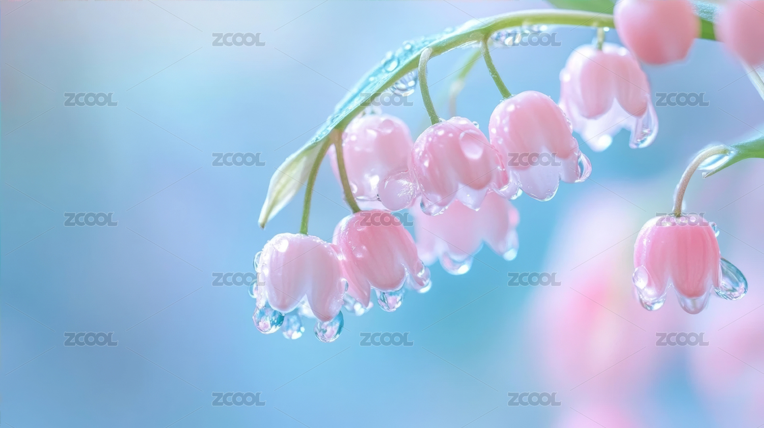 数码粉色铃兰山谷植物场景抽象图形海报网页