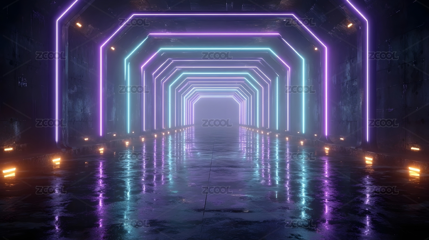霓虹灯,隧道,通道,科幻,粉色,紫色,反射,灯光,未来,地板