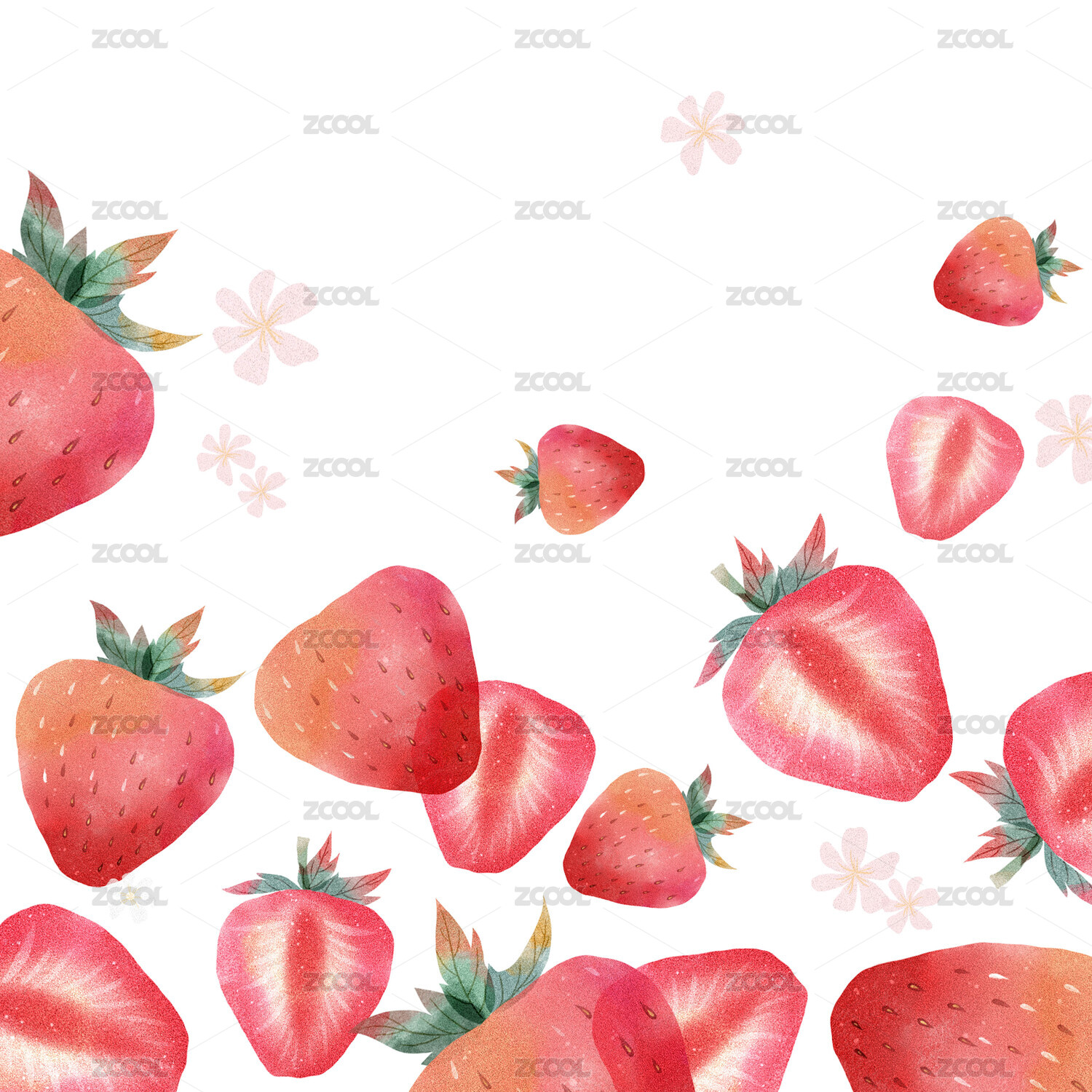 草莓花朵插画背景