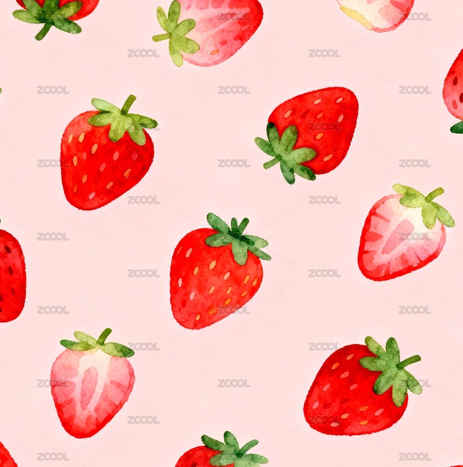夏日清新水果手绘插画平铺壁纸草莓
