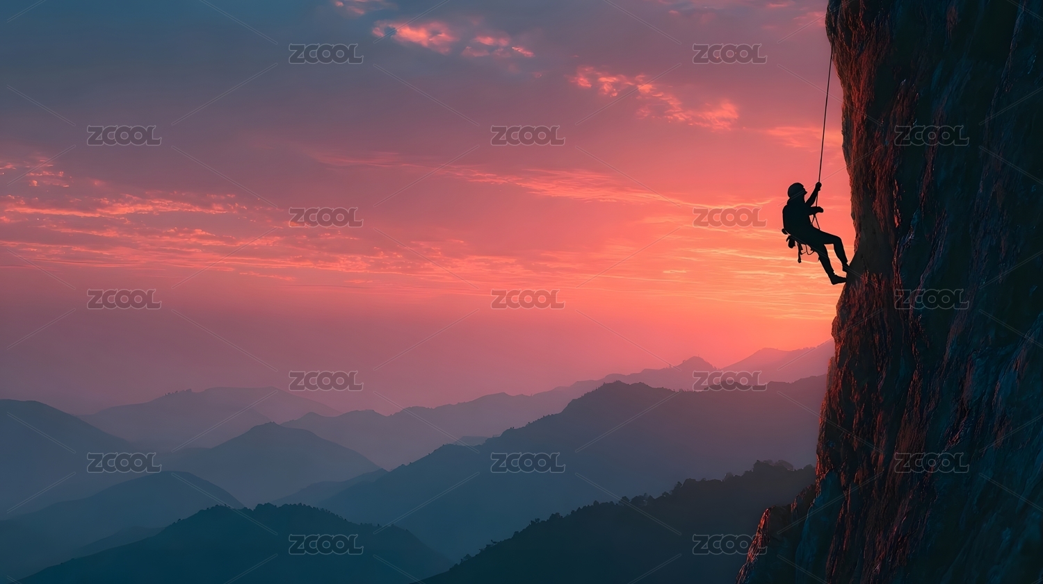 攀岩者夕阳剪影