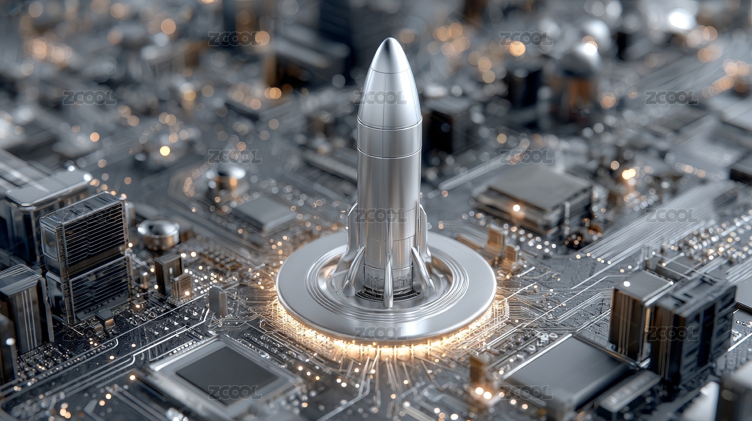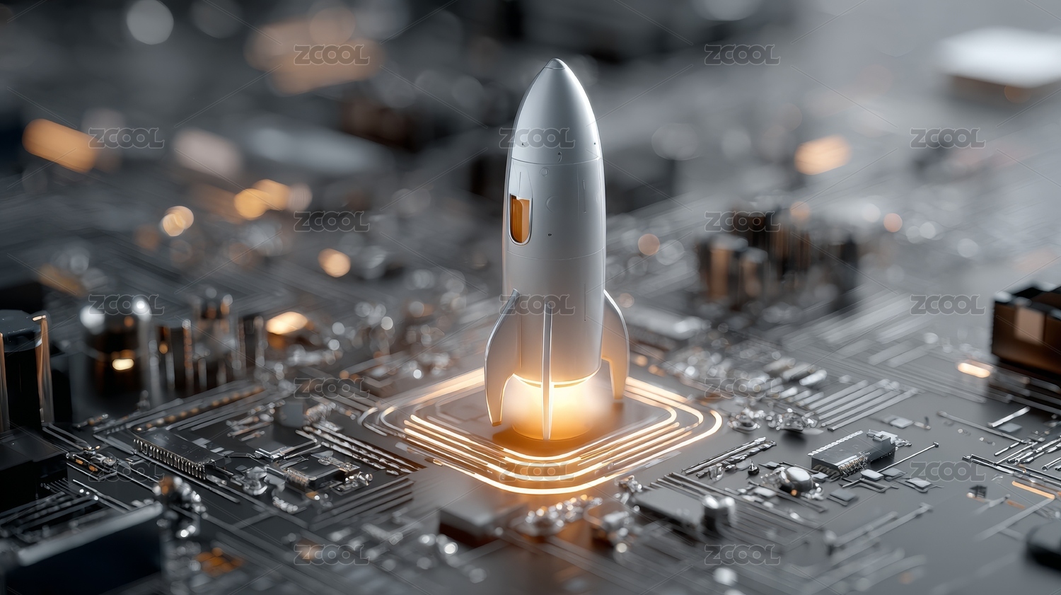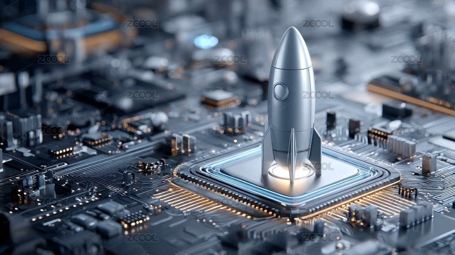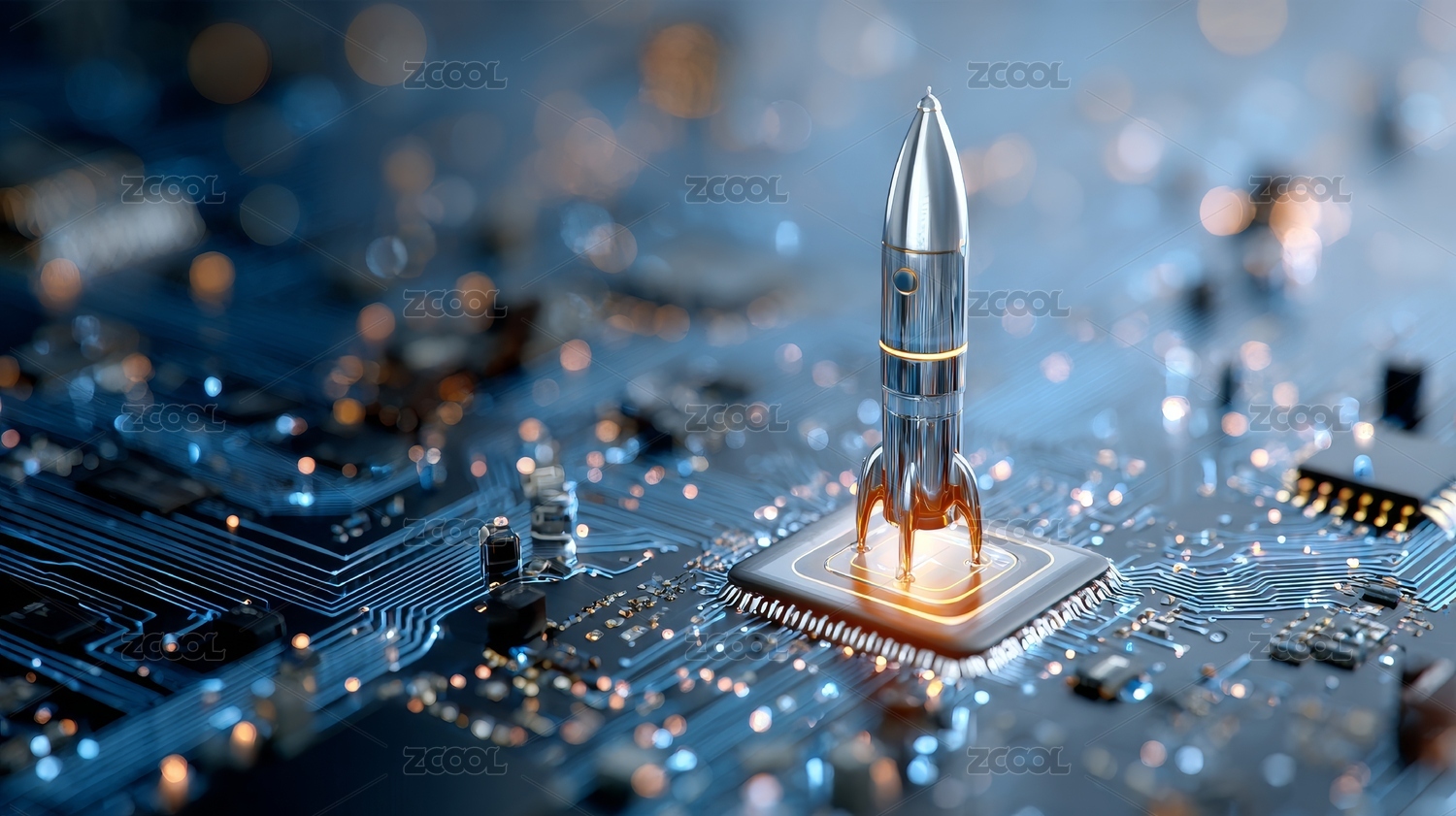 电路板上的火箭象征科技进步