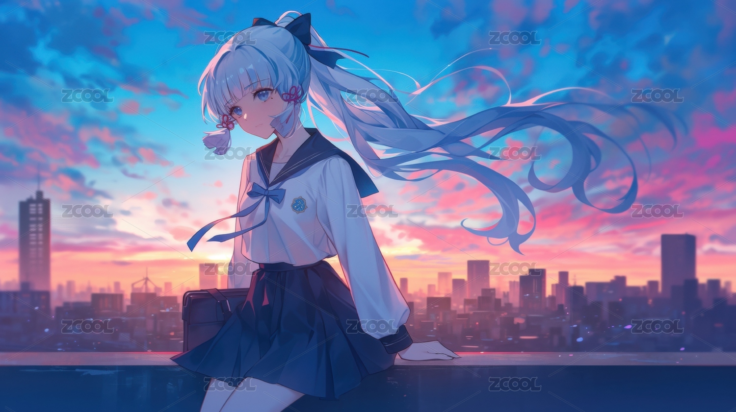 可爱的动漫女孩缤纷的色彩壁纸背景