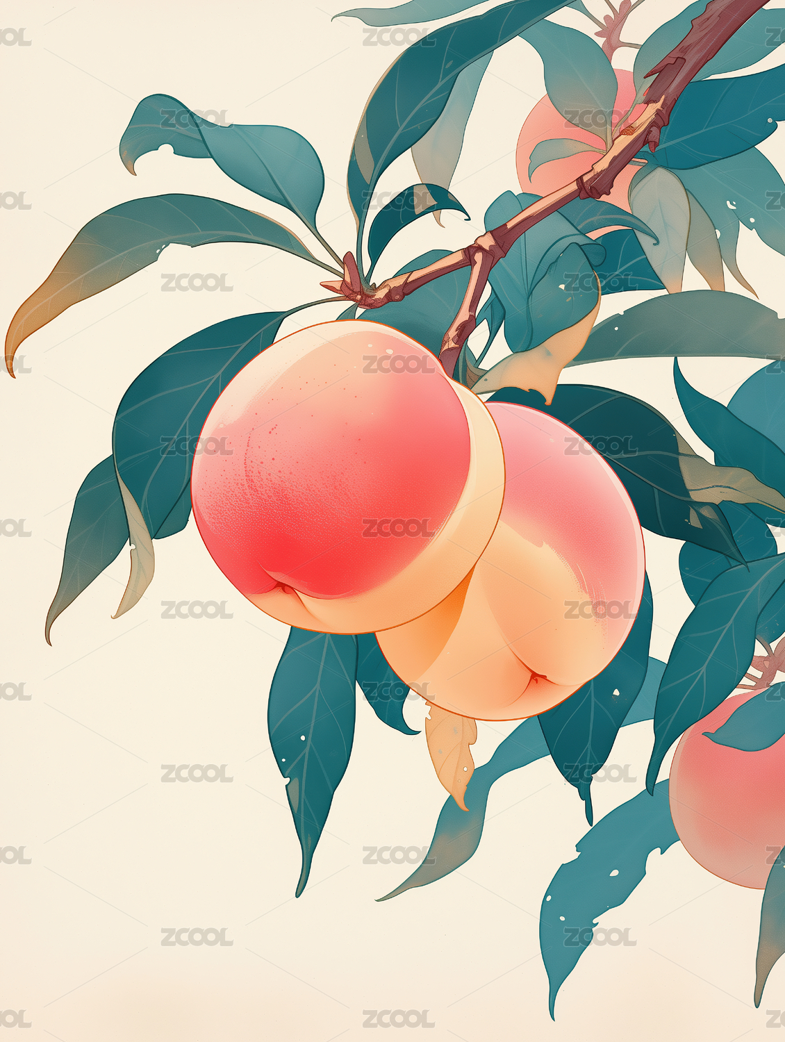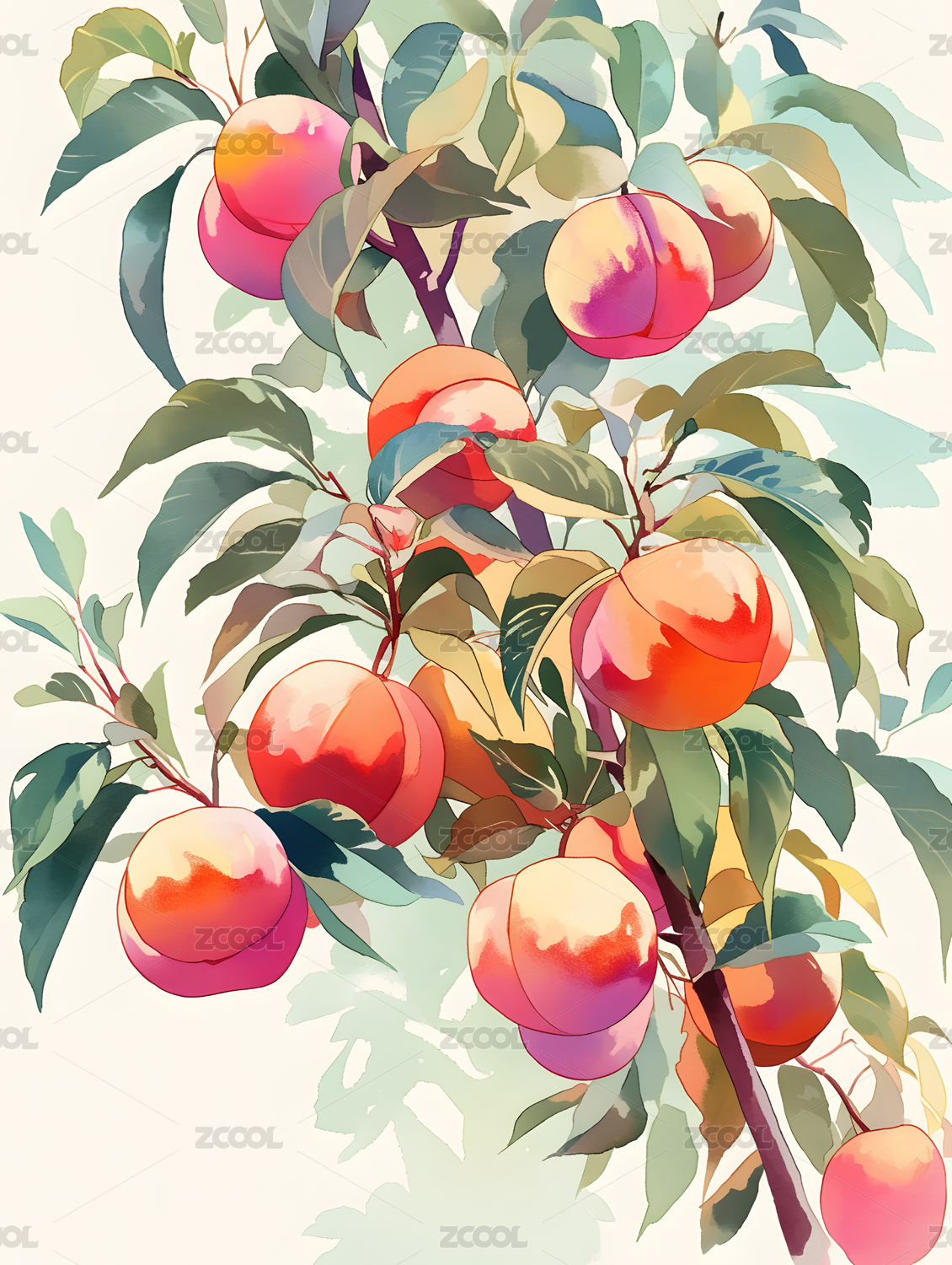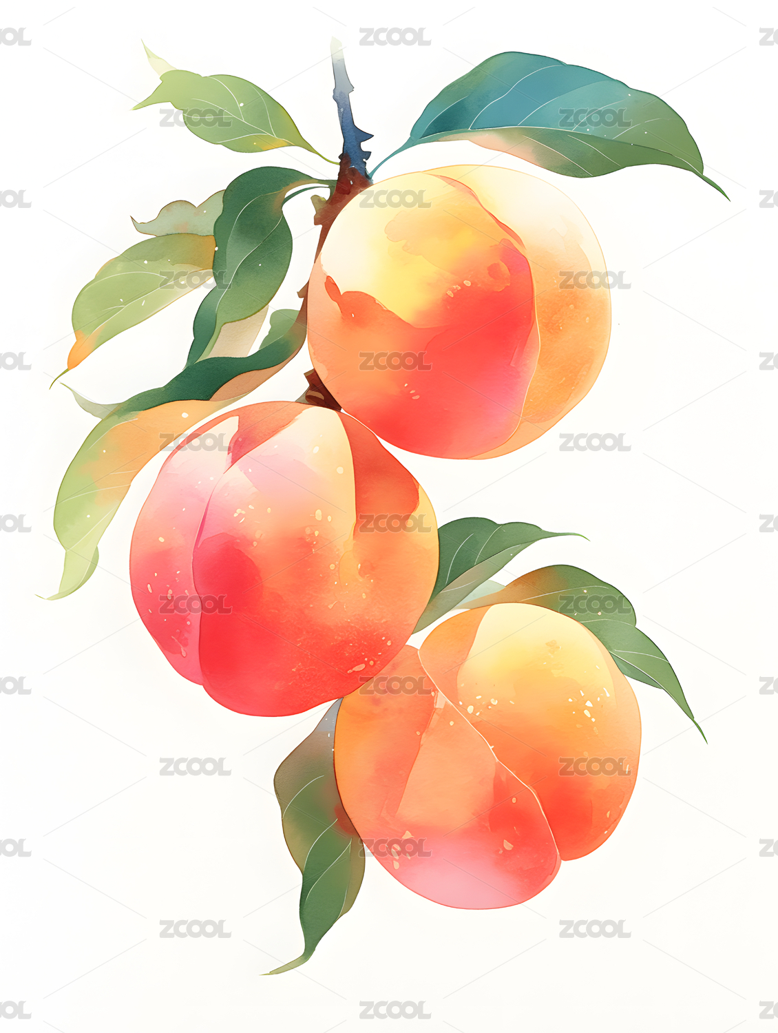 食物,水果,自然,黄果,绿叶,枝头,插画,清新,明亮,夏日