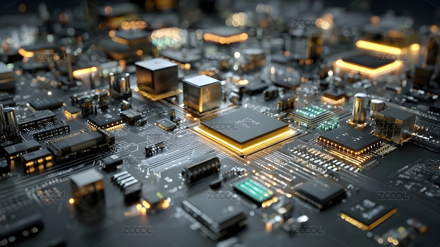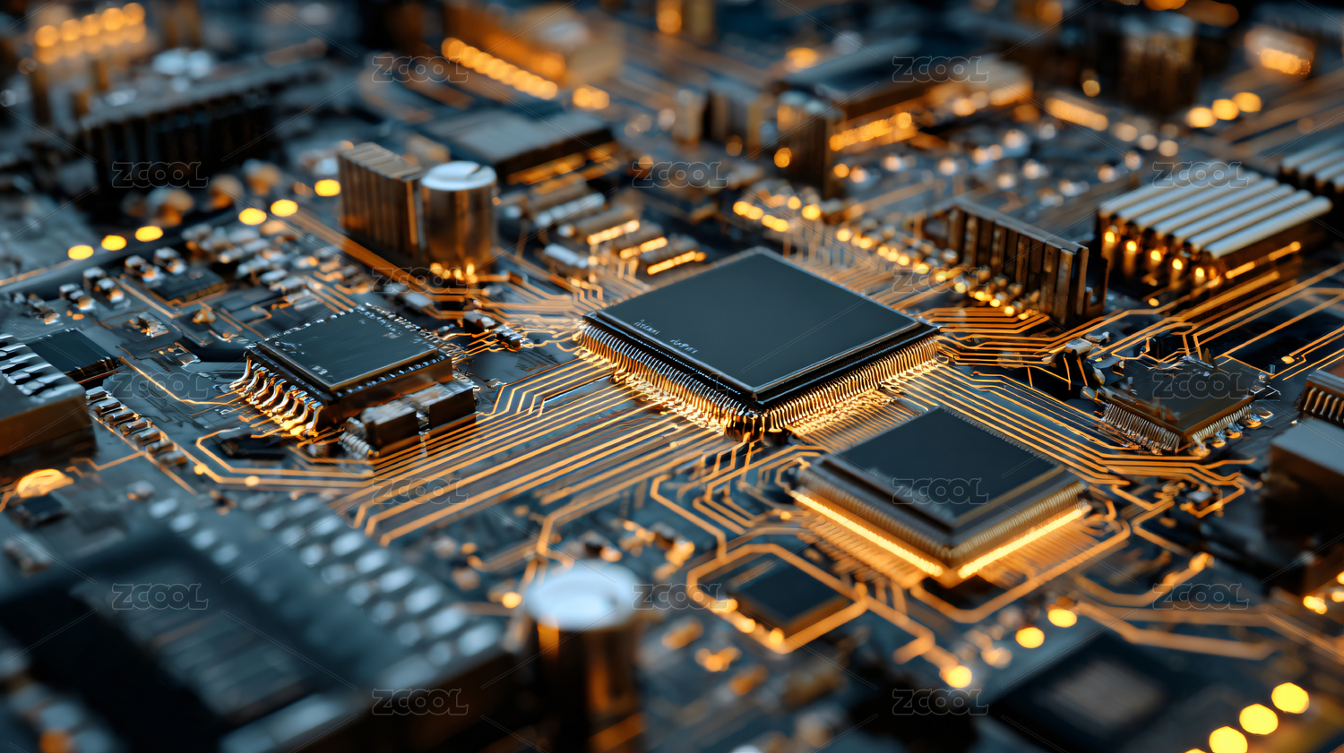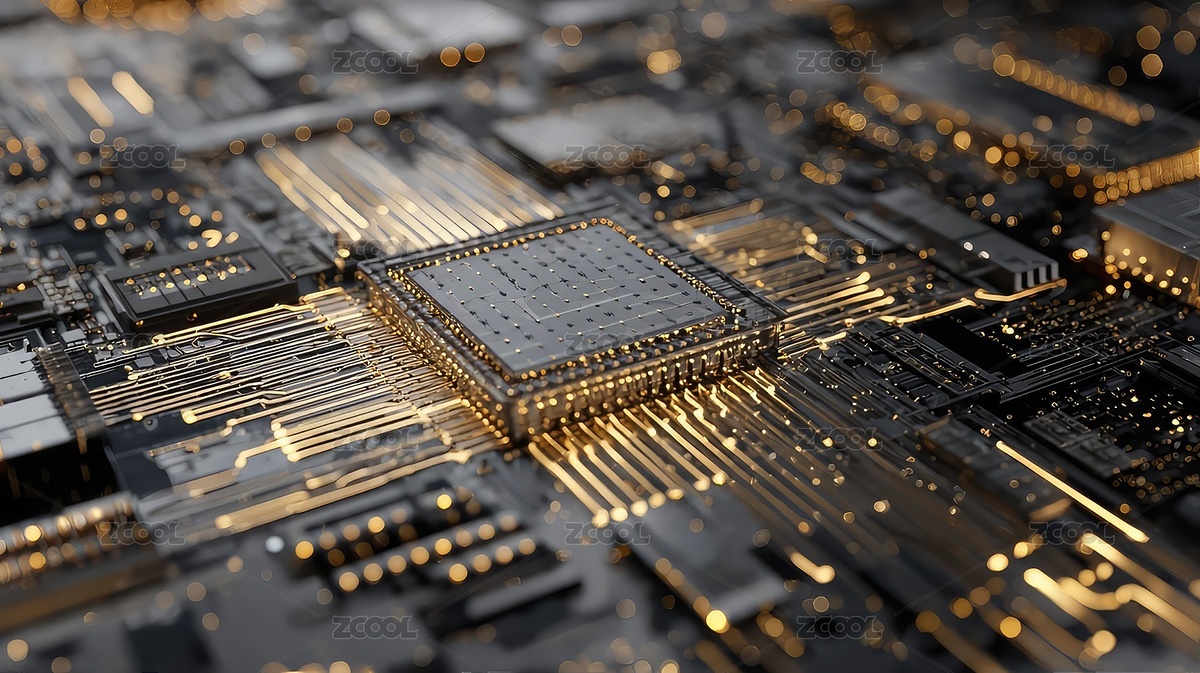 芯片主板特写金色线条科技感