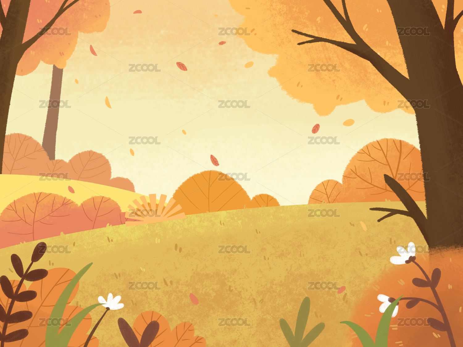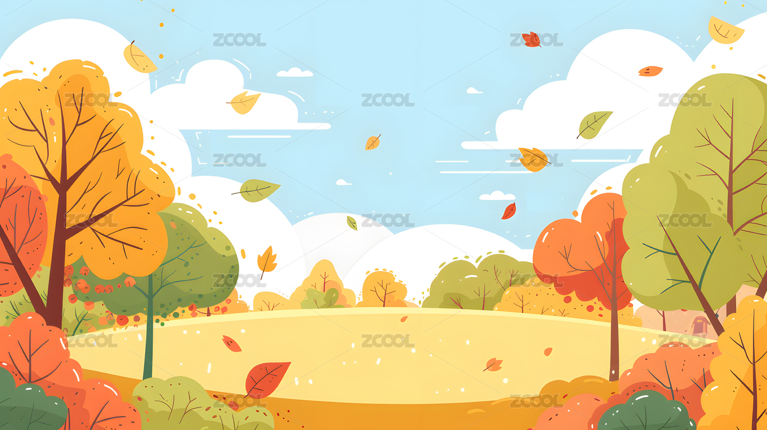 秋天秋季户外自然风光风景卡通漫画插画
