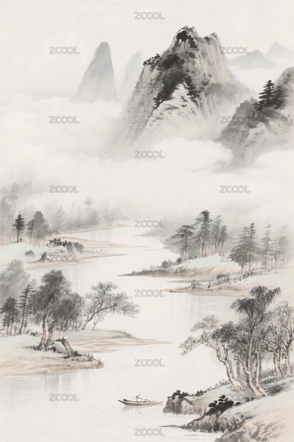 山水水墨风景画