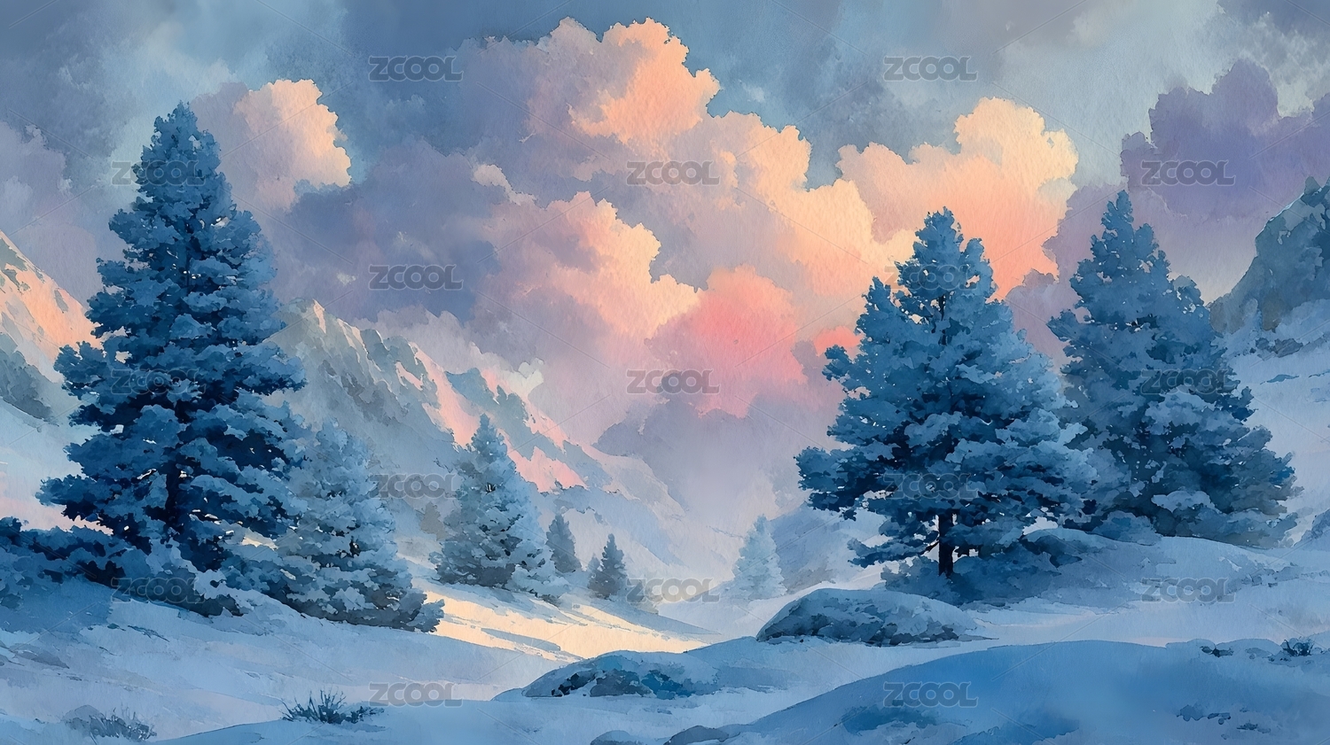 自然,天空,道路,森林,远山,风景,树木,安静,雪,松树