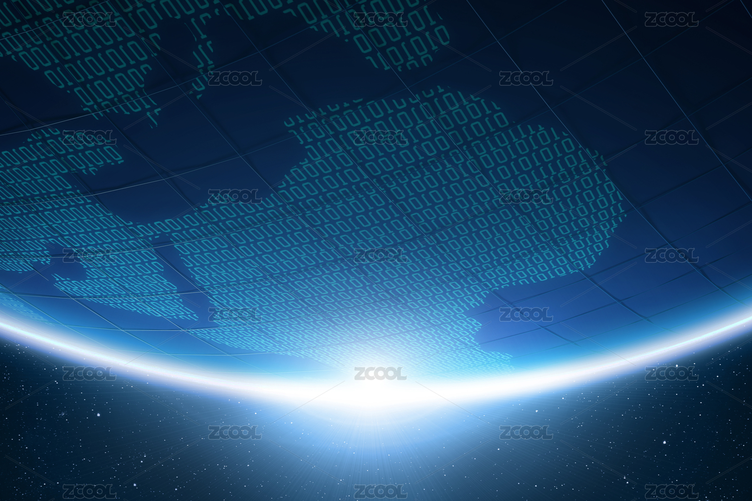 蓝色数码地球曙光通道隧道,互联网科技背景