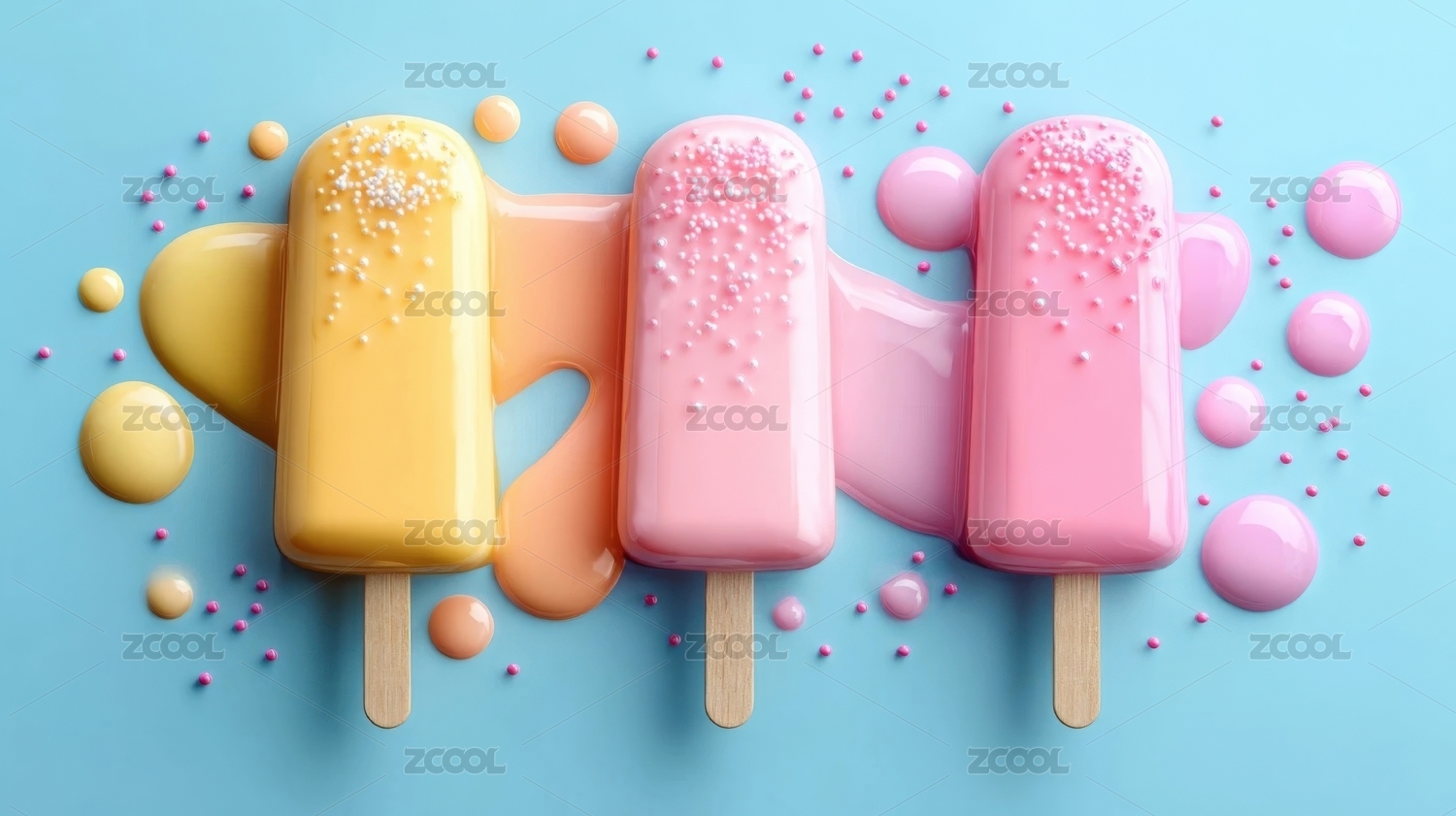 3D冰棒食物夏天解暑解渴美食小吃卡通插画