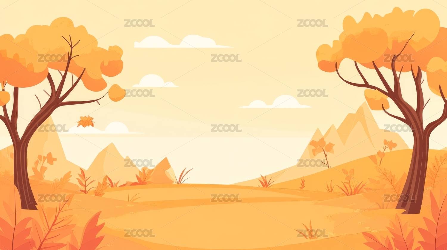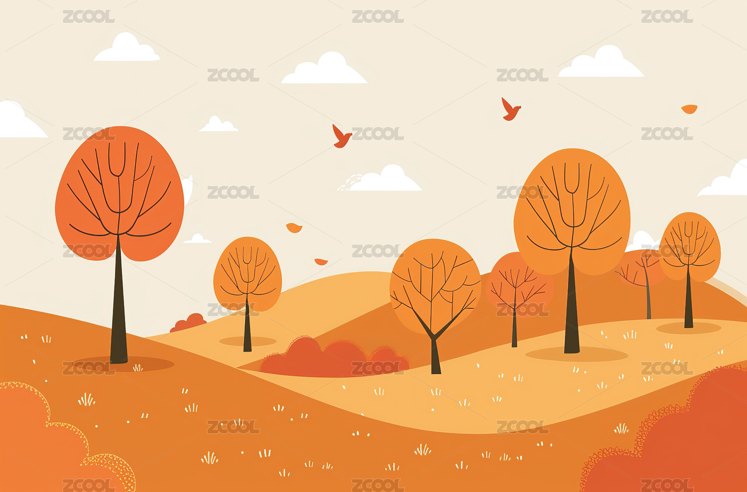 扁平,插画,秋日,场景,季节,落叶,树木,草地,天空,阳光