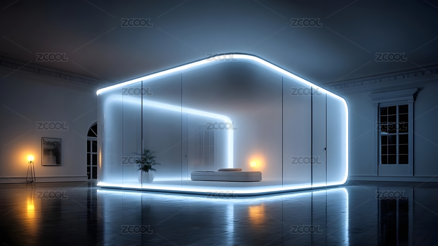 夜晚,夜景,未来感,光线,高科技,科技风,玻璃墙,科幻感,光环,空间感