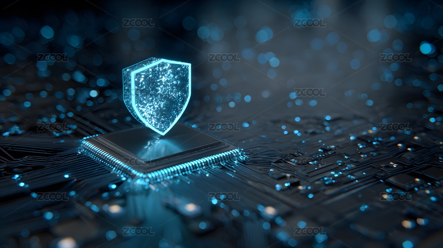芯片电路板背景下的网络安全锁