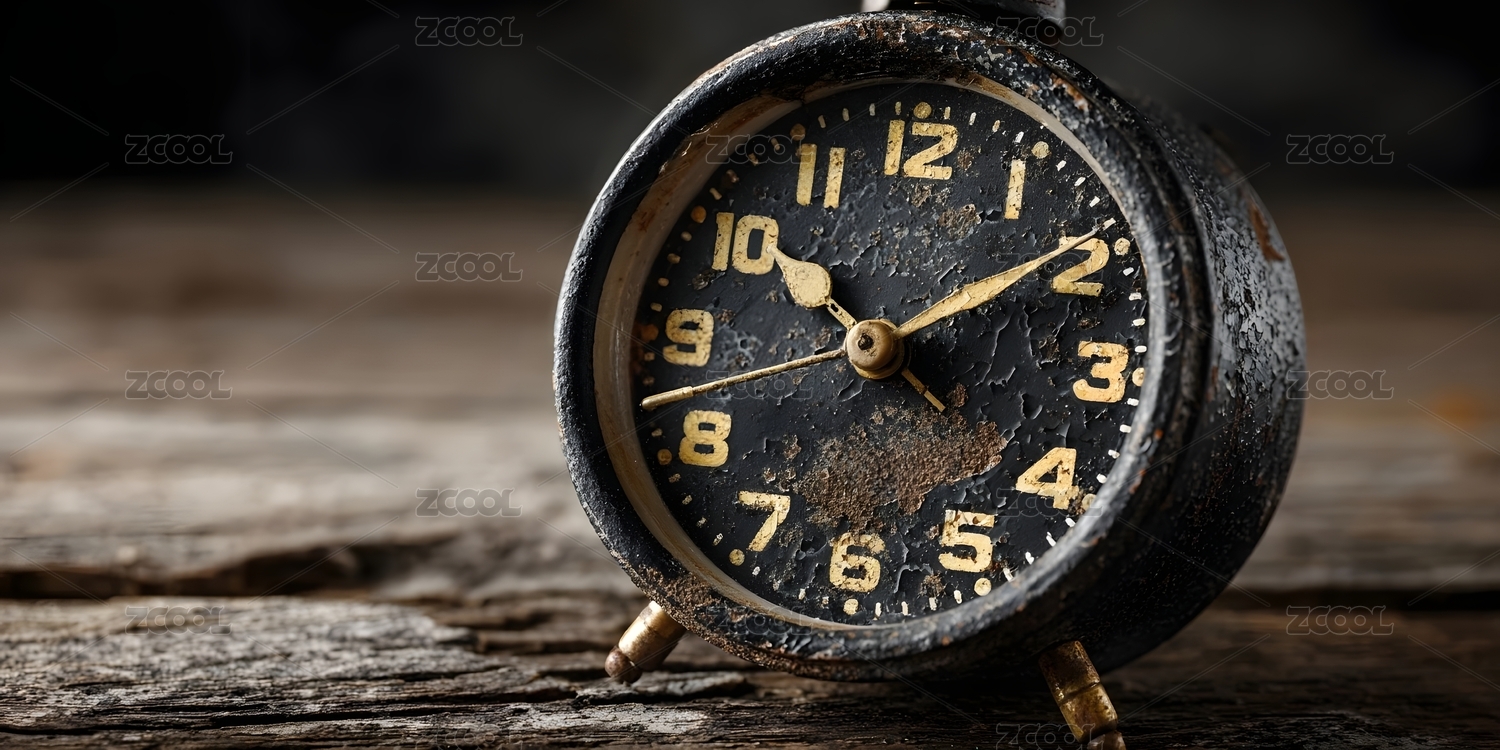 复古闹钟静置木桌