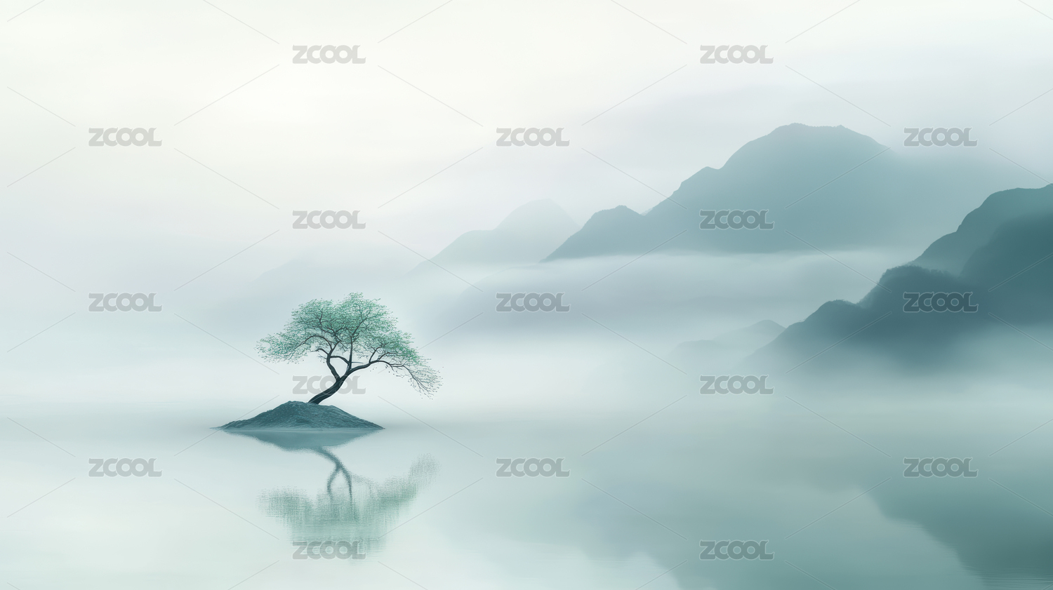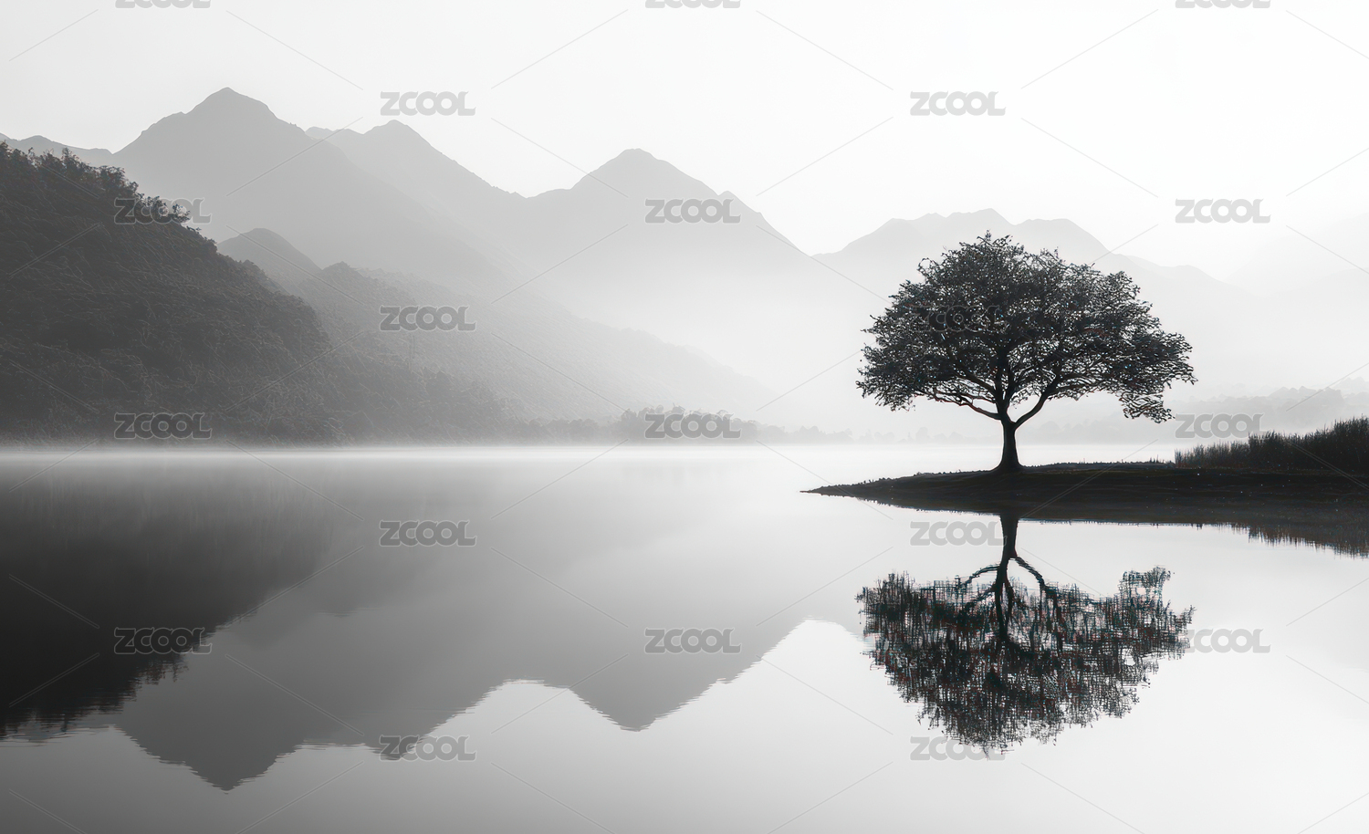 孤树,山,湖,倒影,宁静,自然,山水,风景,美丽,仙境