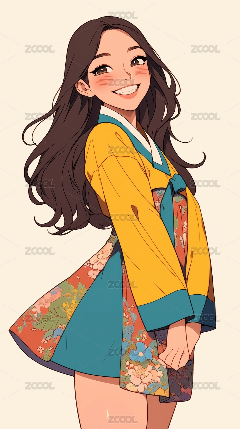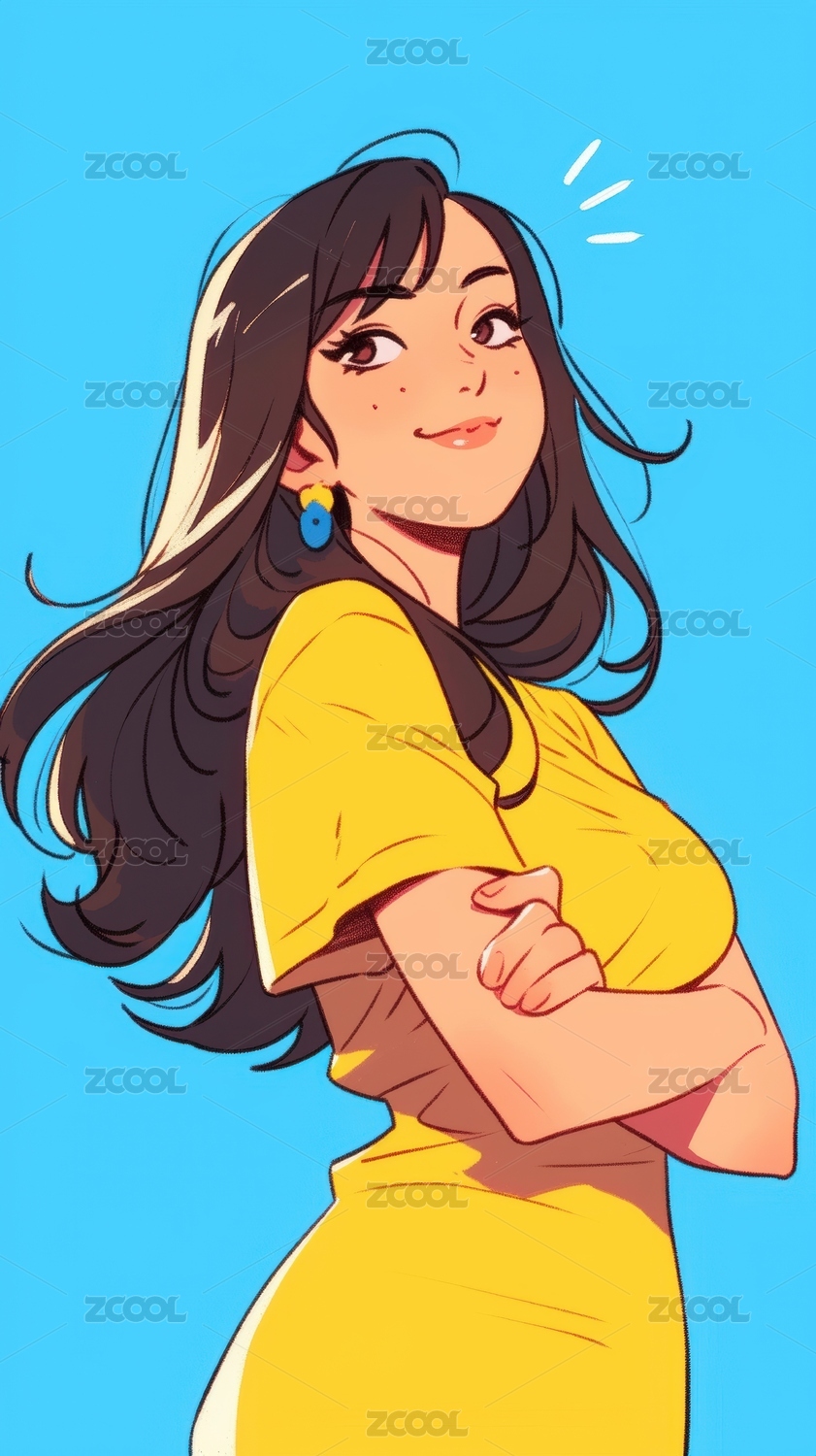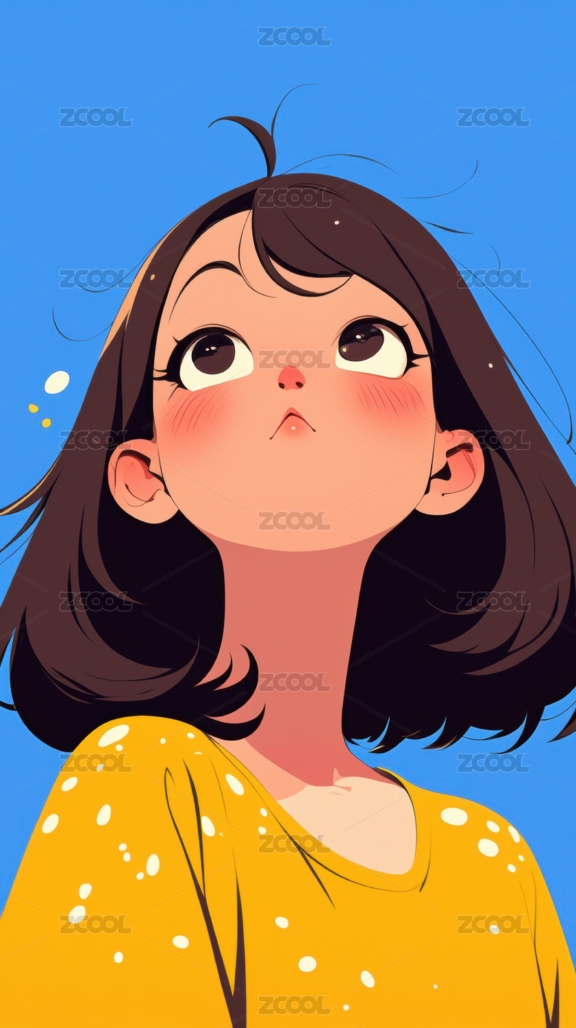蓝色,背景,人物,插画,卡通,漫画,明亮,色彩,长发,表情