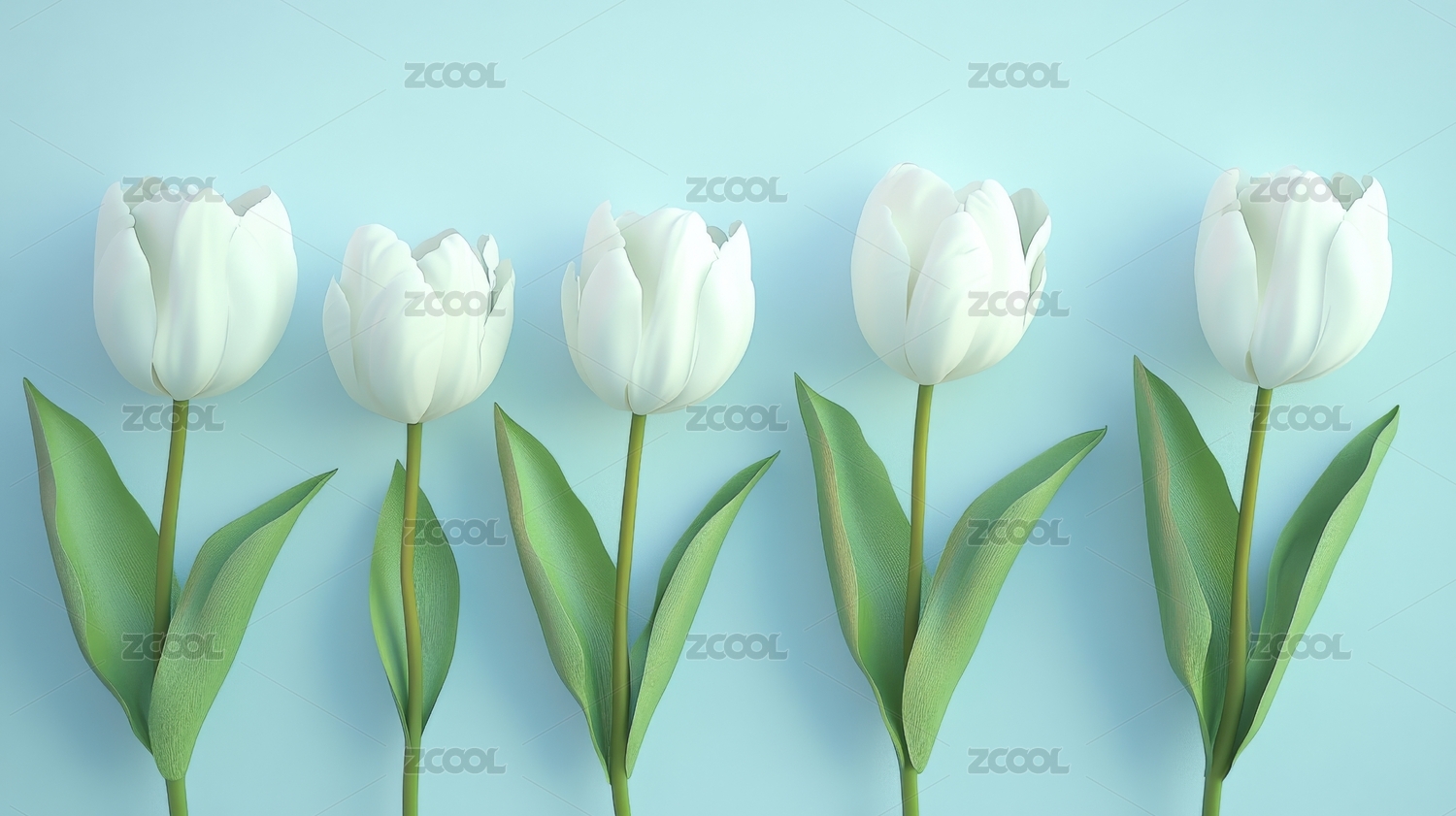 五朵白色郁金香并排排列