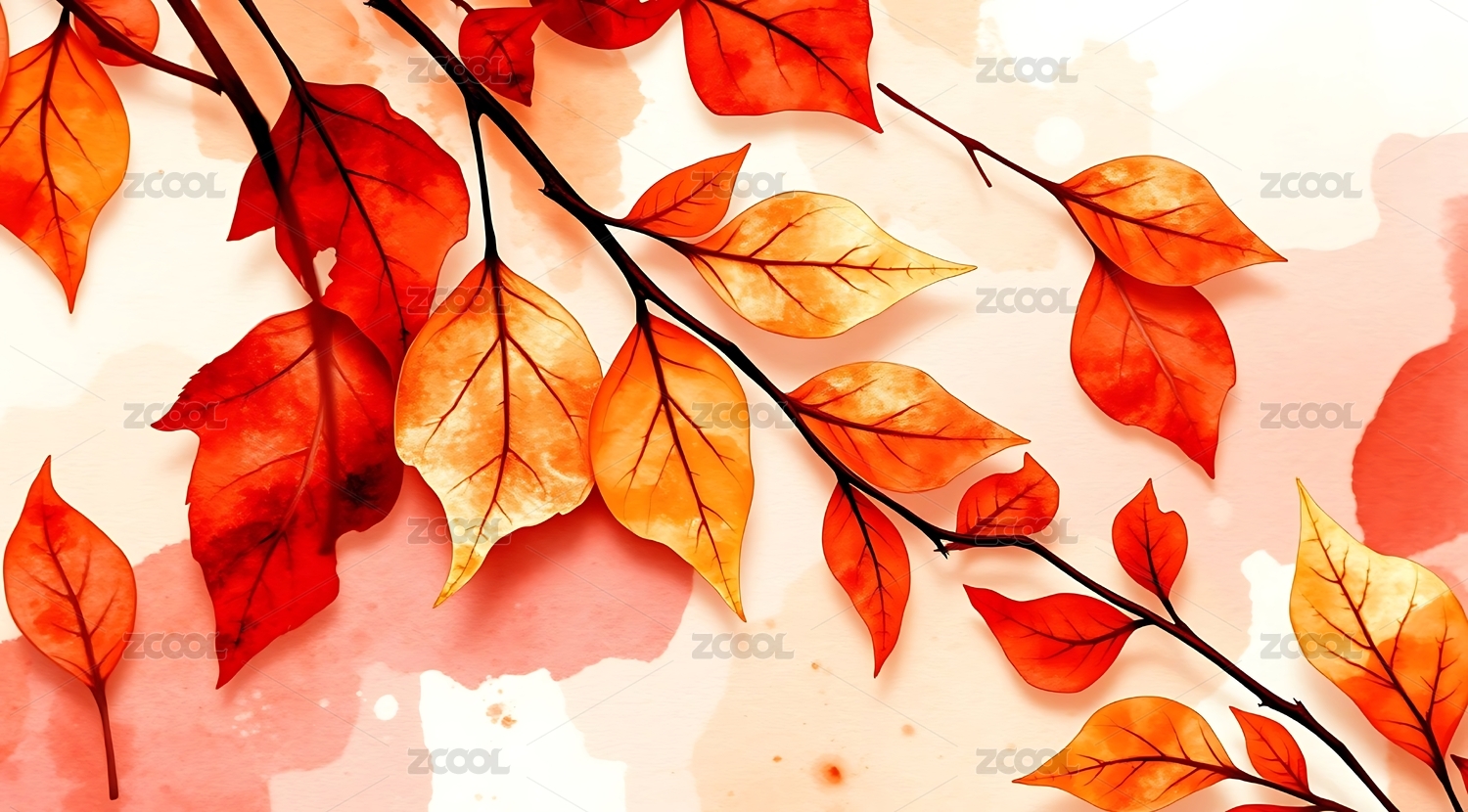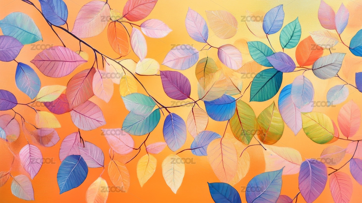 色彩斑斓的叶子枝条画作